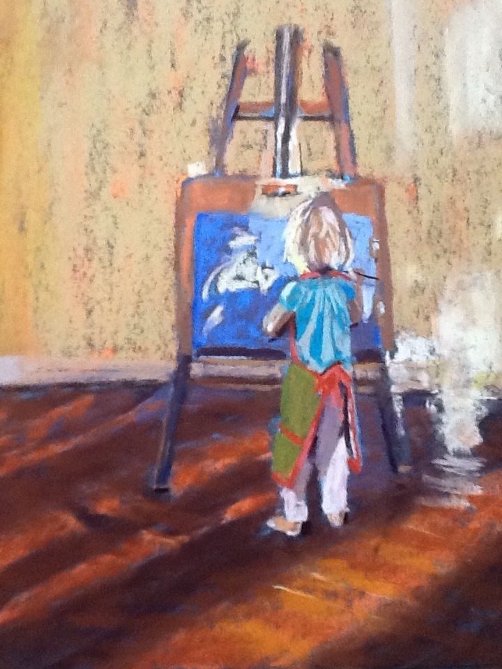 For the artists reading this, or those interested in color theory, you will find this note interesting. I painted this study with a set of pastels I made this week in a workshop, we made beautiful purples, and lights. One of the sticks I made was a total surprise. I mixed 5 parts ultra marine blue, with one part yellow ochre. Yellow and blue makes green right? I expected a slightly olive green. They mixed together to make the most beautiful greyed periwinkle!? The scientist in me knows that until I repeat my experiment my results don’t mean much, but for now I am left guessing that because both ochre and ultramarine and warm versions of yellow and blue, that affected their mixing to make a purple. The color is beautiful, and the surprise, a delight.