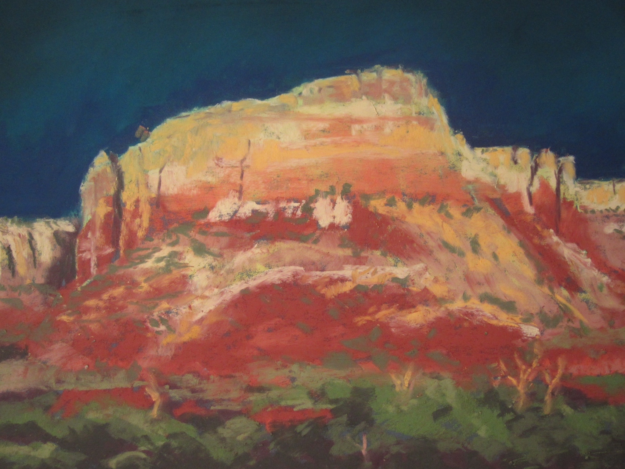 Last night I painted plein air near the cabin from the movie ” City Slickers”. The kaliedescope-light show was spectacular last night, 360 degrees of beauty changing every 5 minutes. I paint fast, but not fast enough. I finally folded up my easel and let the changing light mesmerize me. It felt good to have my bike panders loaded with painting supplies, and a couple finished paintings, and ride off into the sunset.