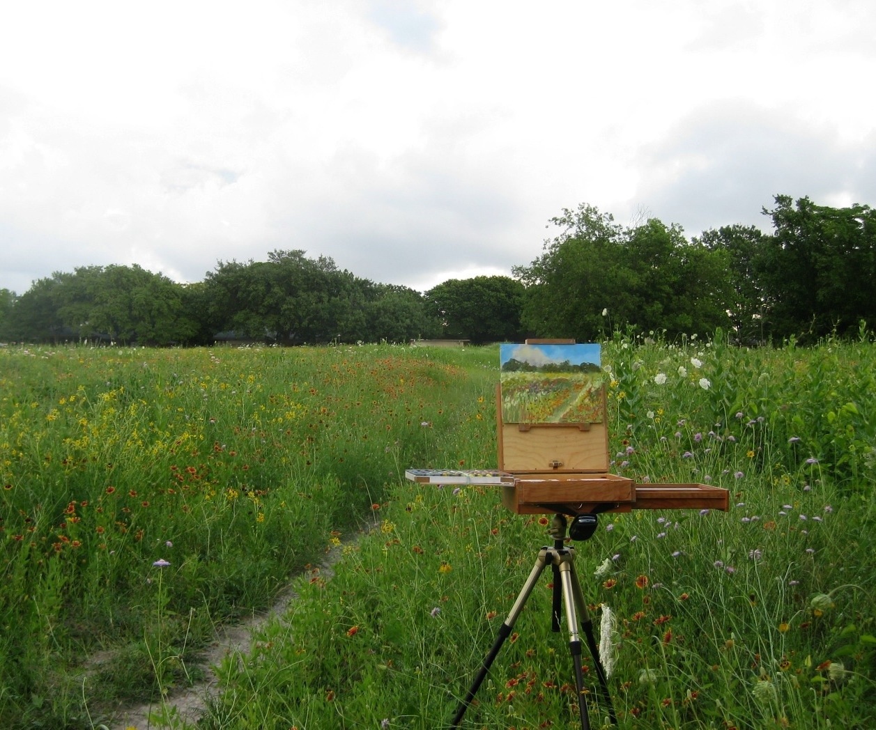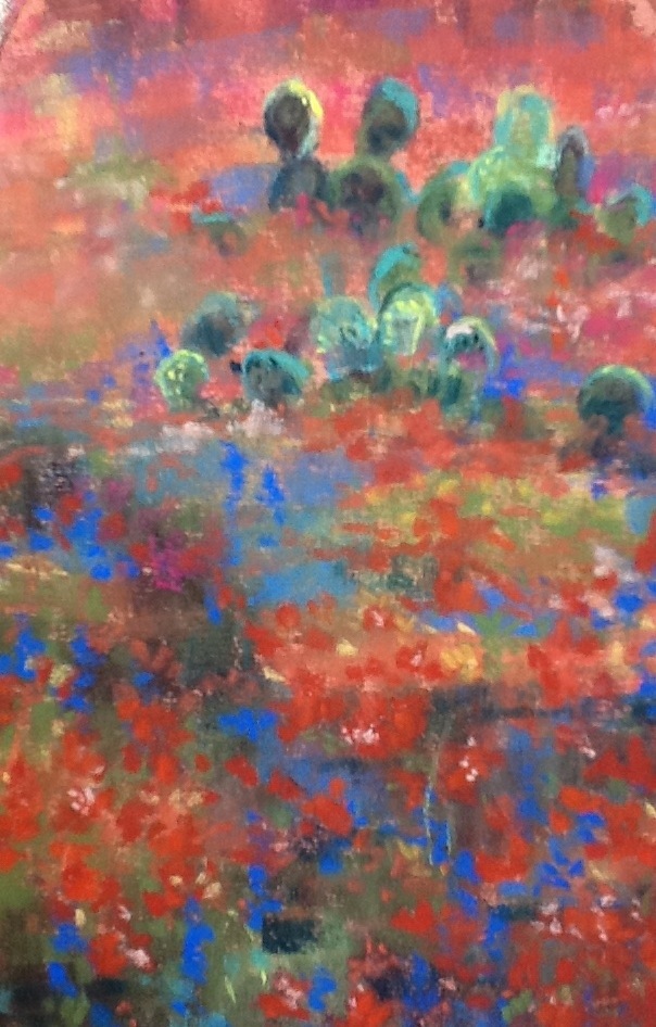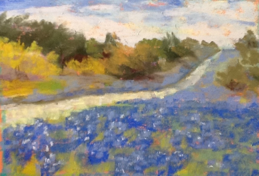 I had a great chance to enjoy Texas wildflowers this weekend. We went camping at Possum Kingdom Lake this weekend. I was struck at how beautiful the drive was, it was fun the watch the colors change as the miles passed by. Although I knew it might make me feel bad, I painted this from the passenger side of the car as I rode with my family.