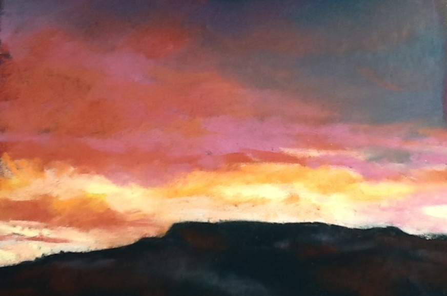 This is my final Ghost Ranch sunset for the year. It has been a blessing and honor to be the artist in residence. I had hundreds of people come to my open studio and sunrise/set painting sessions. I nurtured old friendships and formed many new ones. My family had the chance to experience the wilderness this summer. We hiked and played and painted, it was a good summer.