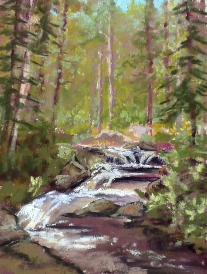 Bluff Springs is an easy day hike along abandoned grades of the historic Cloudcroft logging railroad. The abandoned grades make excellent trails for both hiking in summer and snowshoeing in winter (wishful thinking on my part!). Special attractions: Waterfall; historic railroad grade; lush forest. Climbing up to this bluff is like landing in an alpine meadow. Beautiful light surrounded by old growth firs. I have the painting supplies, who wants to pack the picnic?