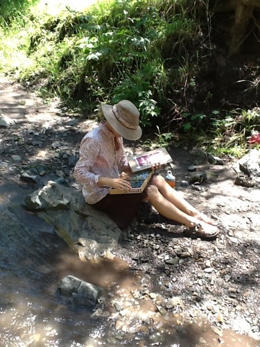 We waited on pins and needles last summer as the White Mountain Wilderness burned. We learned this summer that the fires that passed through were not too hot to ruin the forest, our beloved Argentina, and Bonito canyons were saved! Today I hiked hiked Bonito canyon with my kids. Another year of maturity liberated me from having to pack in a child on my back. The girls were in bipedal delight, and the boys were packed down with lunch and water bottles on their backs, which left me free to carry plein air painting supplies! The boys headed up into the canyon with slingshots and pockets heavy with rocks, and the girls waded and splashed at my feet in a lovely stream all day. I hiked with my family, painted by a babbling stream, and had my favorite hiking lunch: triscuits, hard salami, pink lady apples and good cheese.