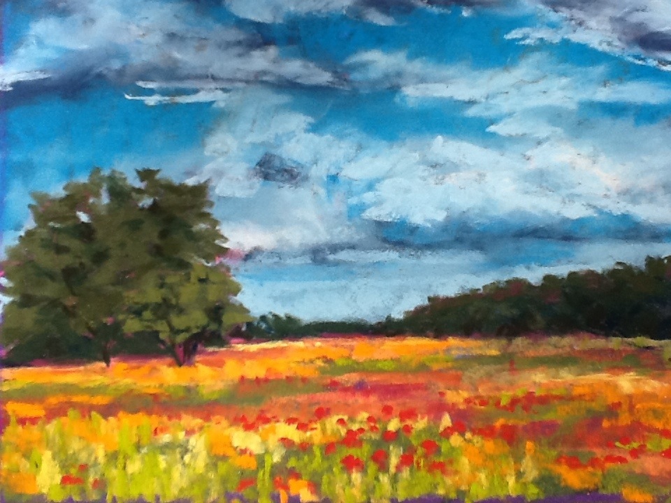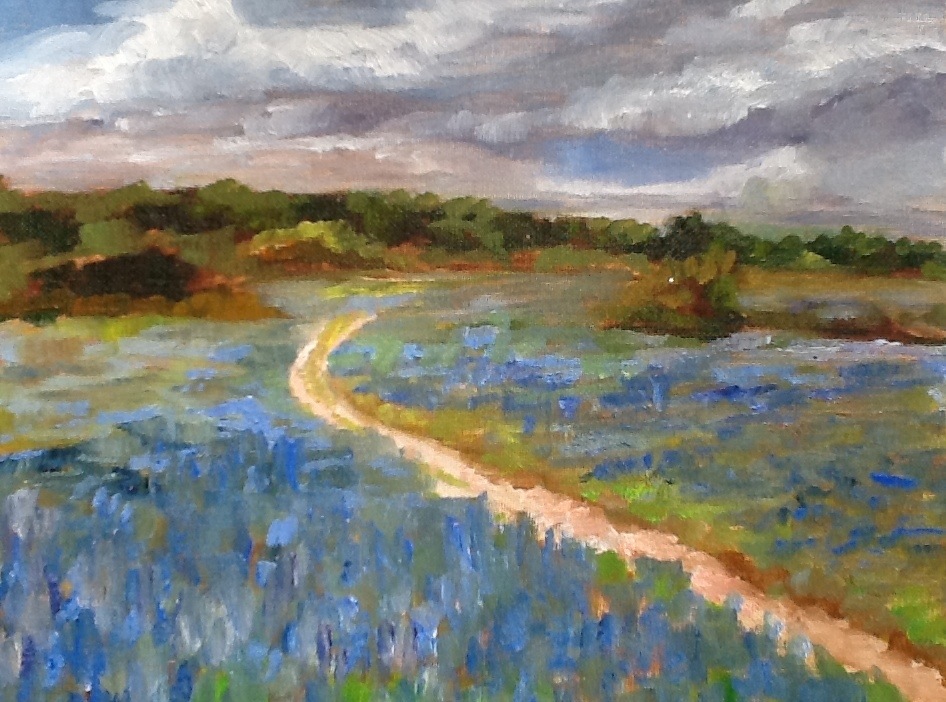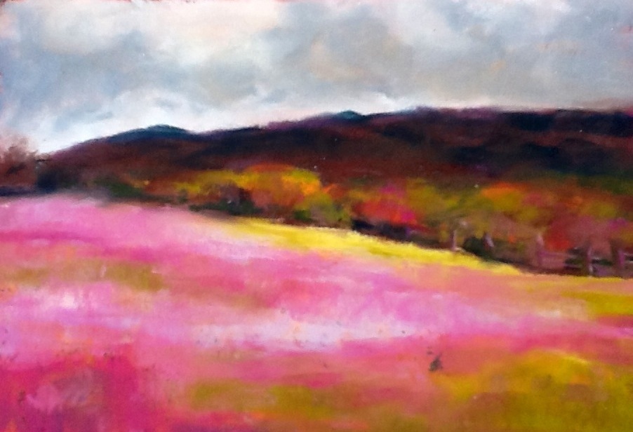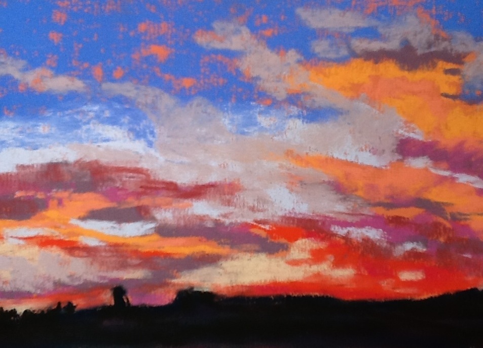 This is an oil painting from a study in pastel. I painted a cadmium red ground, and didn’t wait for the underpainting to dry so it greyed the blues. It wasn’t intentional, just me being impatient, but I love the overcast look it gave my painting.
