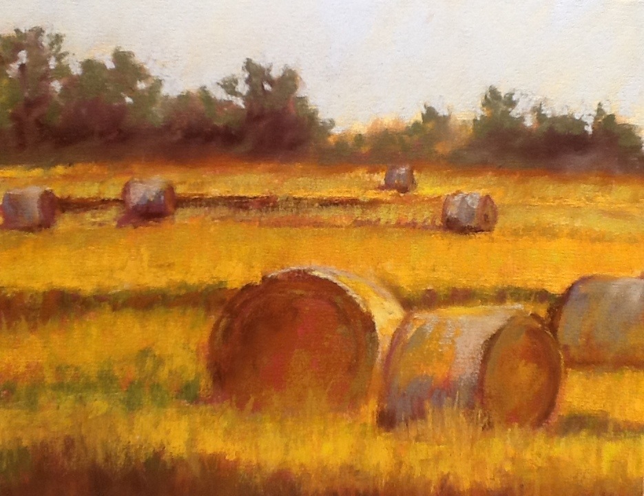 The influence of the impressionist on my perception is strong. Sometimes when I look at a pond filled with waterlilies, or a field of cut hay it brings tears to my eyes imagining the impressionists studying their subject matter. If the impressionists would have been in Texas, they would have painted the wildflowers, for honestly, the quality of the light is not that remarkable. This field had lovely strong shadows, but the color was muted. I am in Texas, not France, but because the impressionist painted, I know what is possible. I followed the light and shadow, but imagined the color, and was pleased with the result.