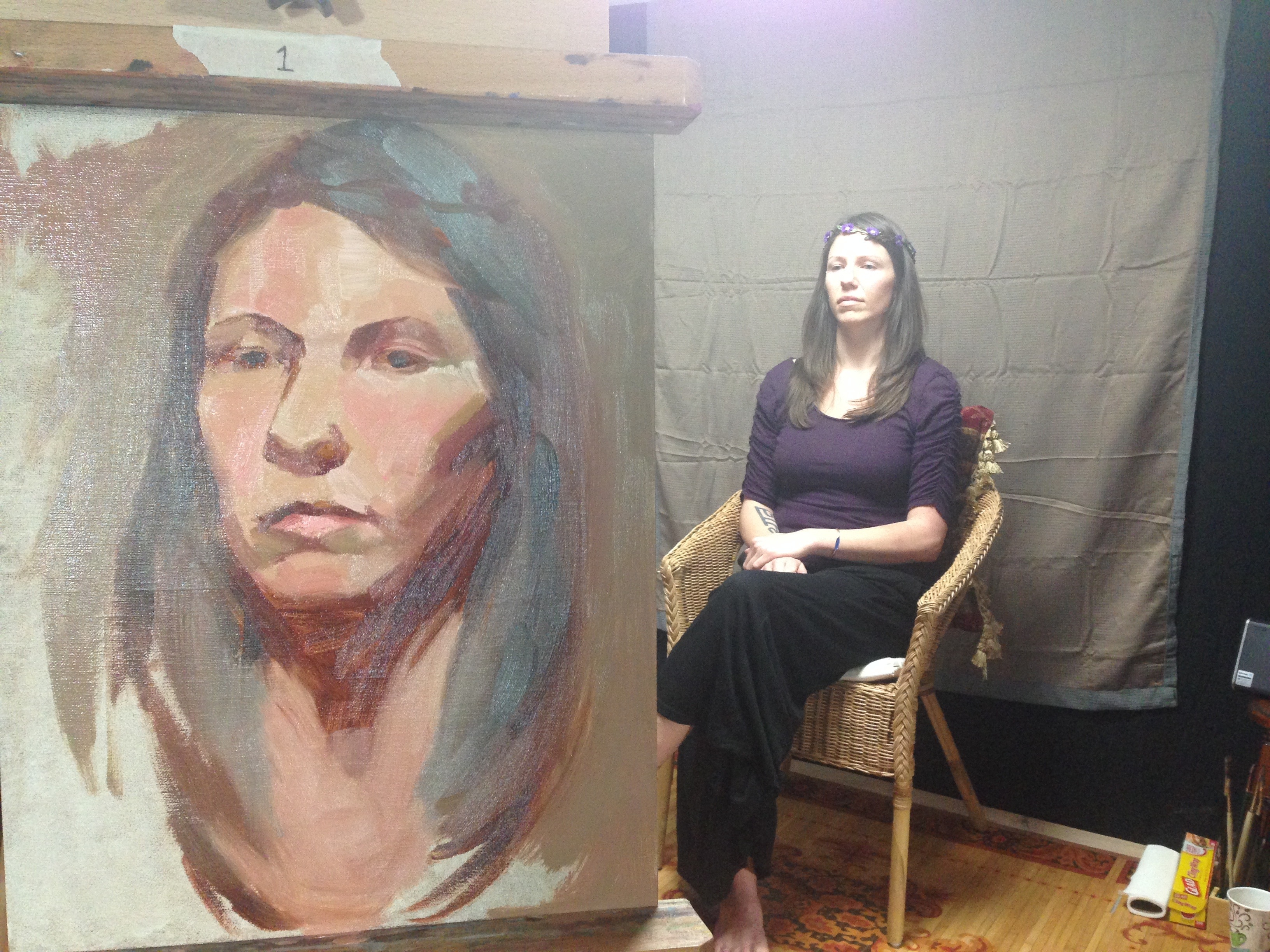 I am continuing to work on my portrait skills. I took a wonderful one day workshop from the Anna Bain. I walked into her studio and was surrounded by beautiful faces: dozens of framed portraits hanging on all the available wall space. Anna’s paintings were breathtaking and inspiring. Her demo was amazing. The atmosphere was nurturing. After lunch we stood at our easels, brushes in hand ready to capture the lovely model, Misty, in oil. this was my first attempt to paint a portrait in oil. I had also never tried double, oil primed portrait grade linen as a surface to paint on (cotton primed canvas feels like sidewalk in comparison). I wish I would have had 3 more hours because I needed all of my time to establish the major highlights and shadows. My Misty looks older and more severe than how lovely and serene model actually was, but I am happy with my first attempt.