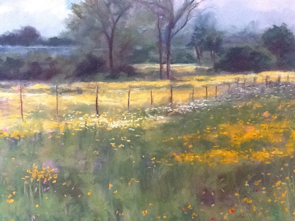 This is a field of yellow flowers. I didn’t note which species on my photo, but I know enough about yellow composites to know each flower is not that remarkable on its own. It probably had a woody stem, perhaps even slightly prickly, and they usually have a fragrance that is…well, stinky. As I painted, I thought of the thousands and thousands of acts we go through as mothers – the small things that alone don’t amount to much, honestly, they too might be just a wee bit stinky. However, if you can get a bit of perspective, by climbing a tree, standing on your car, or perhaps a stack of calendars and yearbooks the big picture can take your breath away.