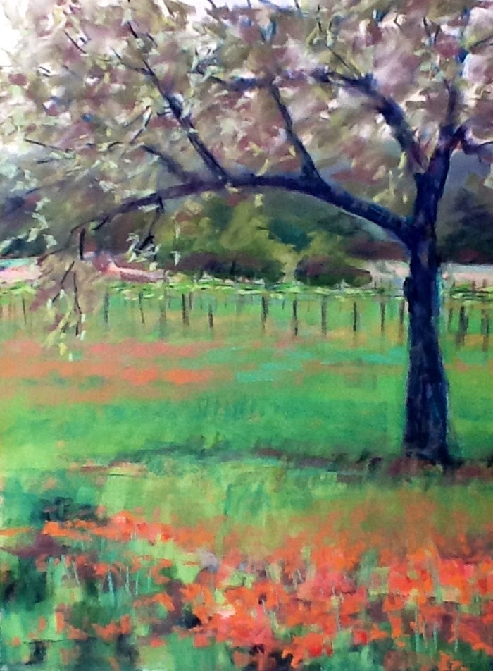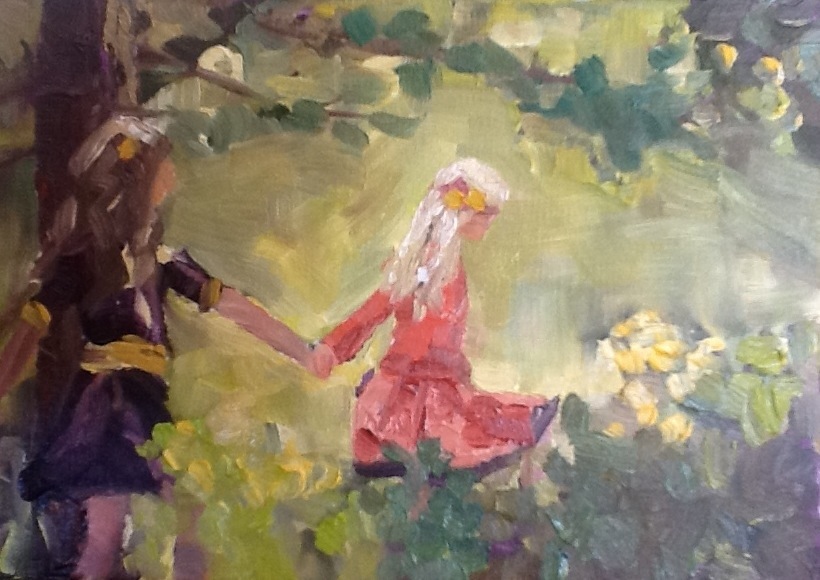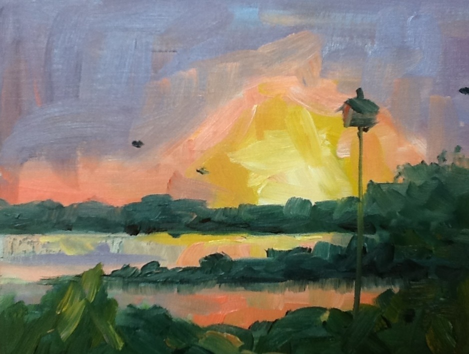 Then today I got in the car to drive to NM with my dear husband. He likes to drive, so I had all day to sit. Why not paint? We weren’t in a car actually, we were in a SUV, and it was a fairly bumpy drive. I had time and desire to paint, but couldn’t get my hands to hold still. Then I remember the article, and thought how I just had to wait until a small town for a red light, or even a pit stop to regain the steadiness in my hands. I chose for this one small painting to paint with my hands shaking.