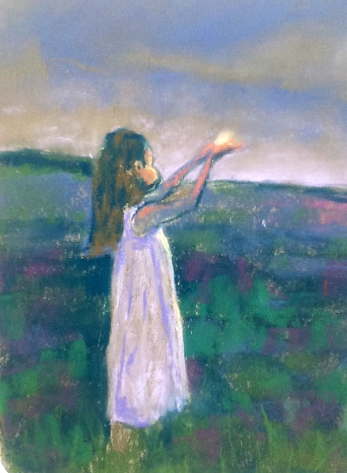 One of my favorite things about running an open studio is helping people realize images that are in their heads. It is like solving a puzzle for me. This study as done on one such afternoon. Dana sat at my open studio, having just lost her uncle Elwin. She wasn’t a portrait artist, she had limited time, and a limited selection of pastels, but a desire to express. So I sat with her and suggested she do a value study, in colors that weren’t flesh tones just somehow represented her Uncle. As she worked she told me about her uncle.