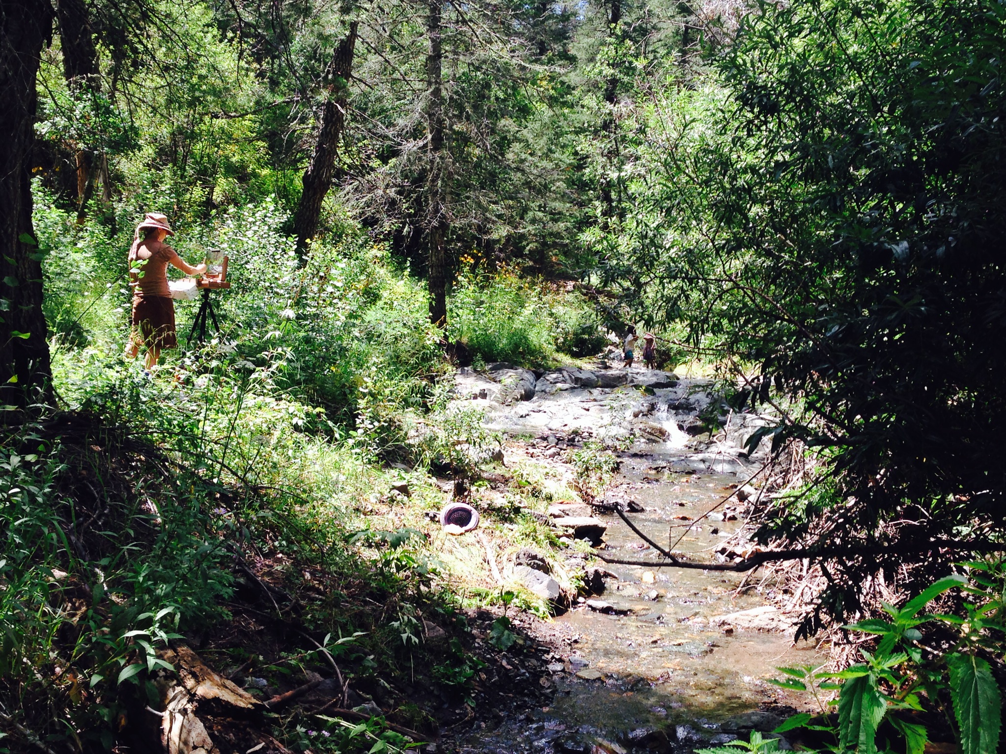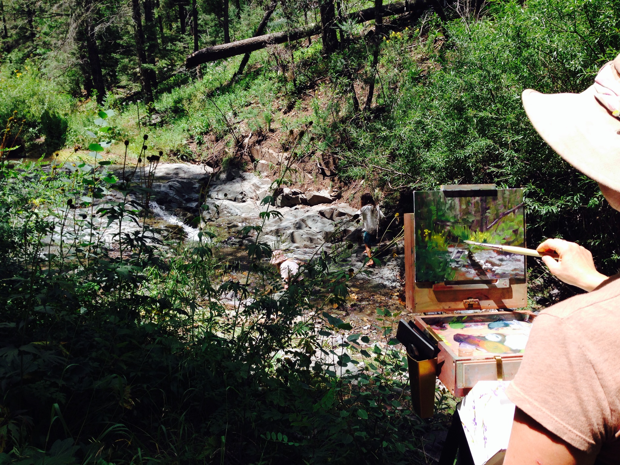 I spent a perfect day here painting. My boys ran up neighboring Argentina canyon across the crest trail and down Bonito where we met for a picnic. My girls splashed up and down the stream I was painting (look close they are in both photos). As you can see by the second photo I was in full sun with no umbrella, so my painting came out too dark. It is hard to judge values when you are getting blasted by sunlight. Good lesson. Bonito day.