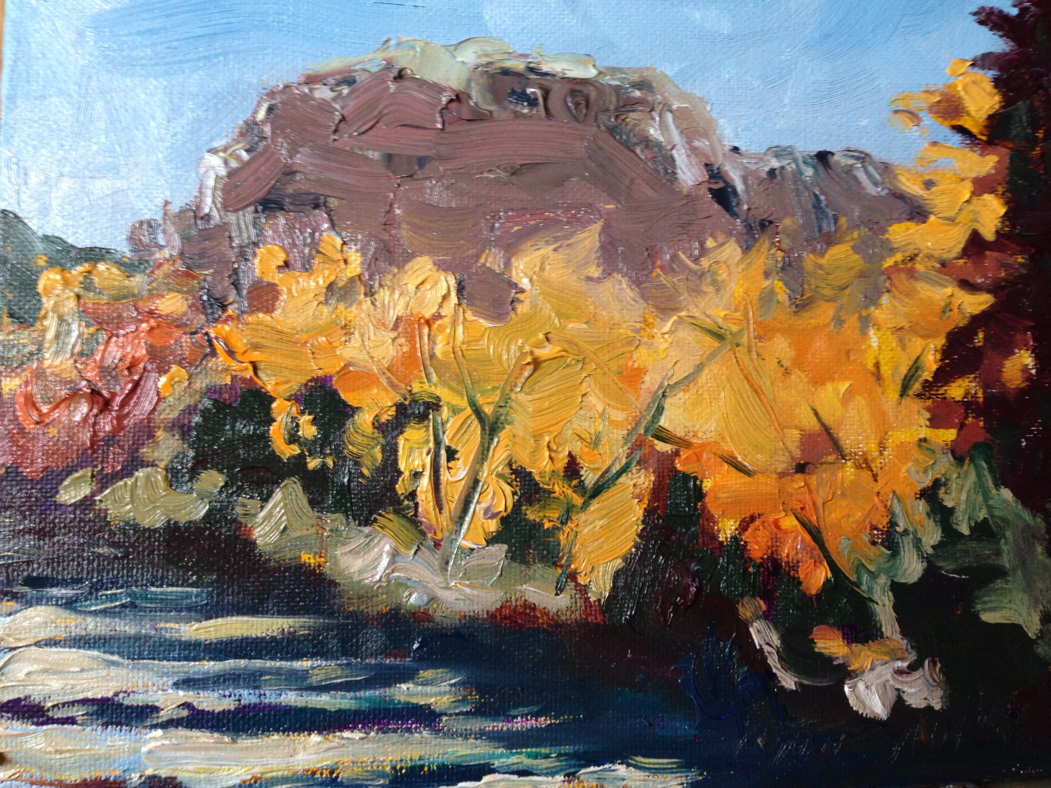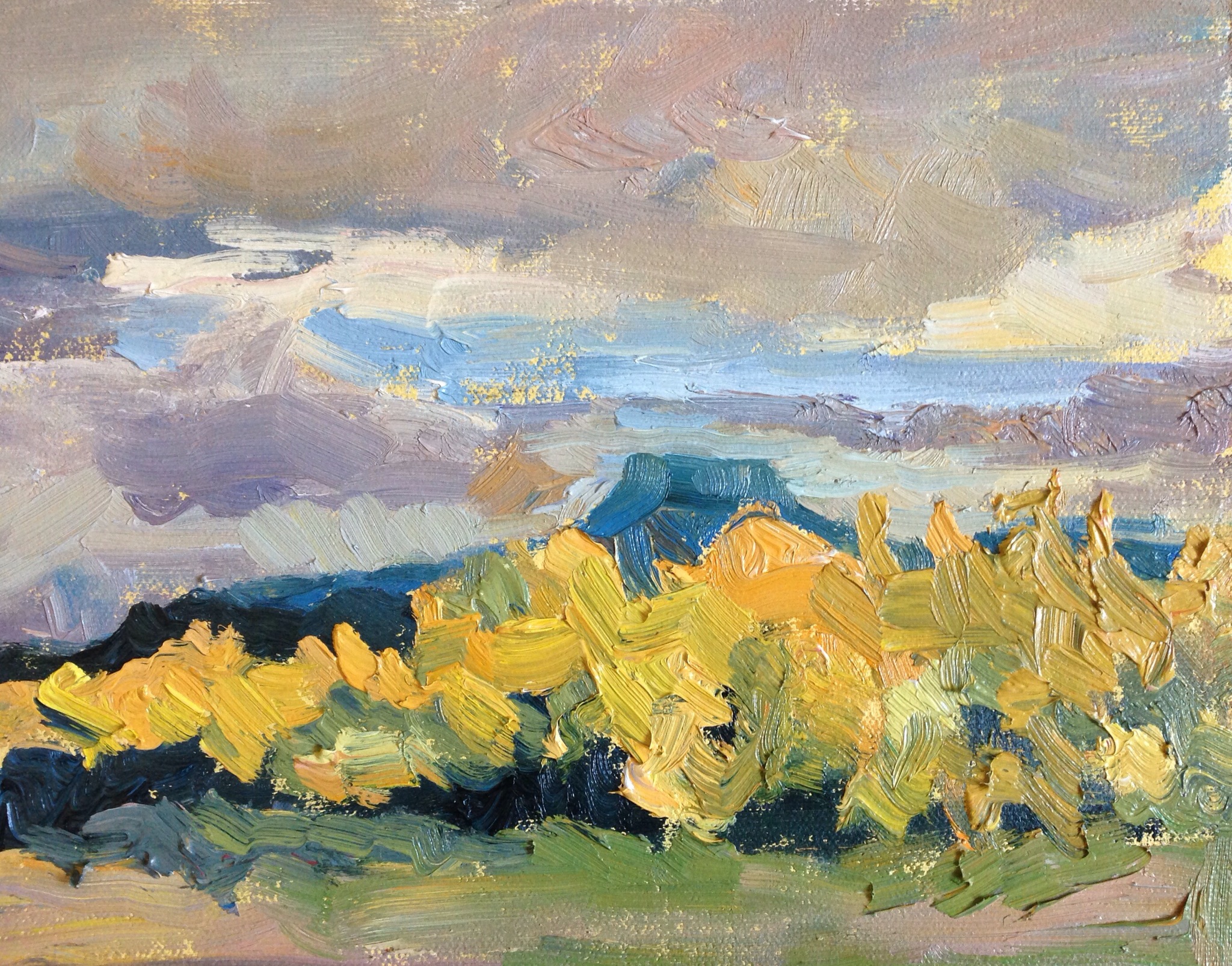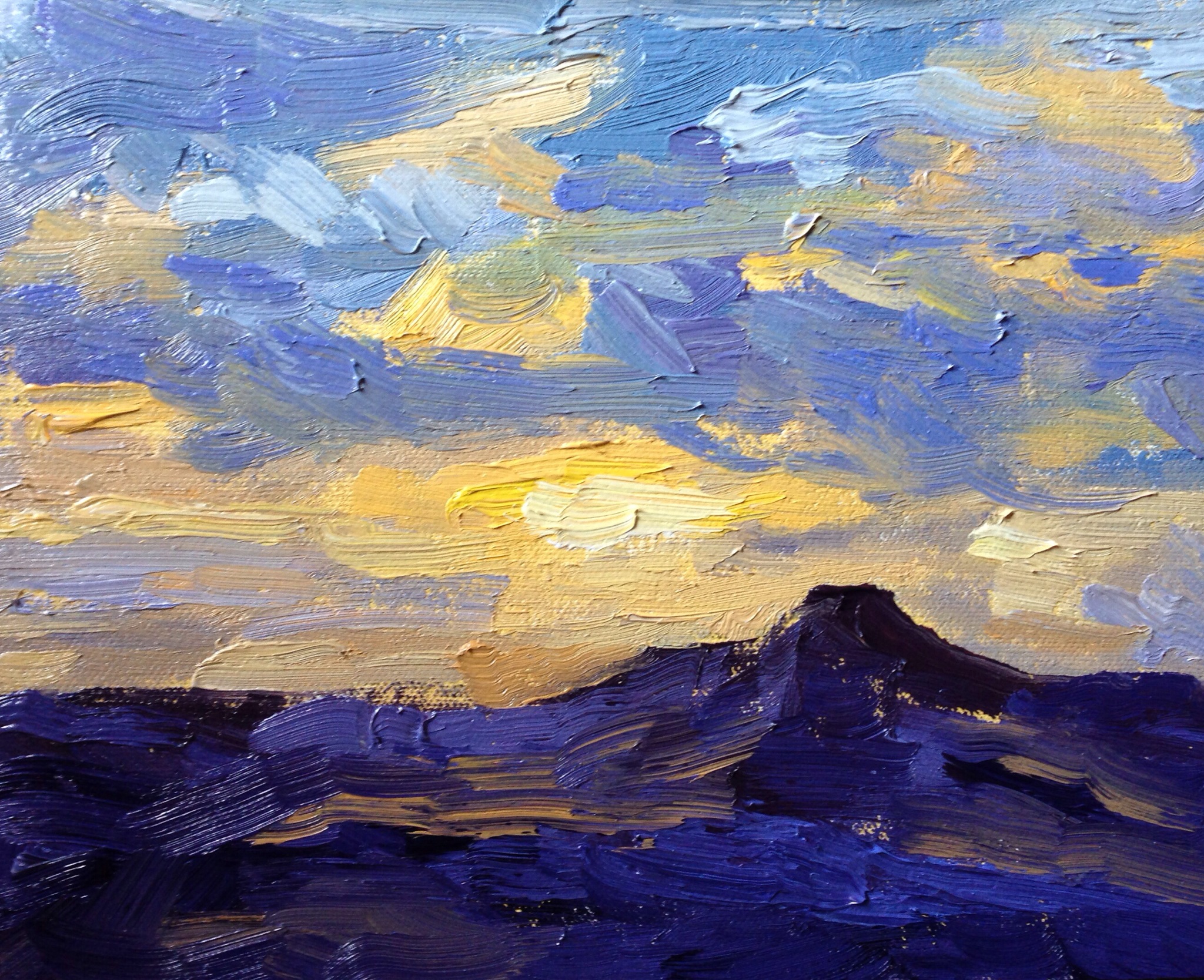 I had ambitious plans to bring home a dozen paintings from this trip. I had slots for 12 wet paintings, and by George I intended to fill them! My last morning I rose in the dark to pack (for a few minutes). I had a very wise professor tell me in college “everything takes longer than you think”. As often as I repeat that phrase I often refuse to remember the lesson. I didn’t really have time to paint this, but as mothers with young children often do, I stretched time (and painted fast). It was a fun challenge to be painting number 12, and also use up all the leftover greys I had mixed during my week of painting.