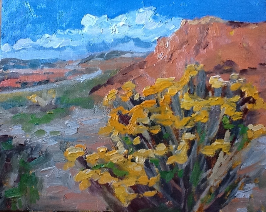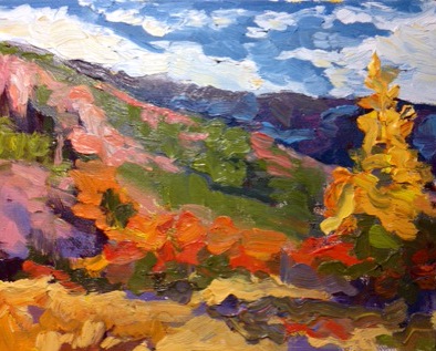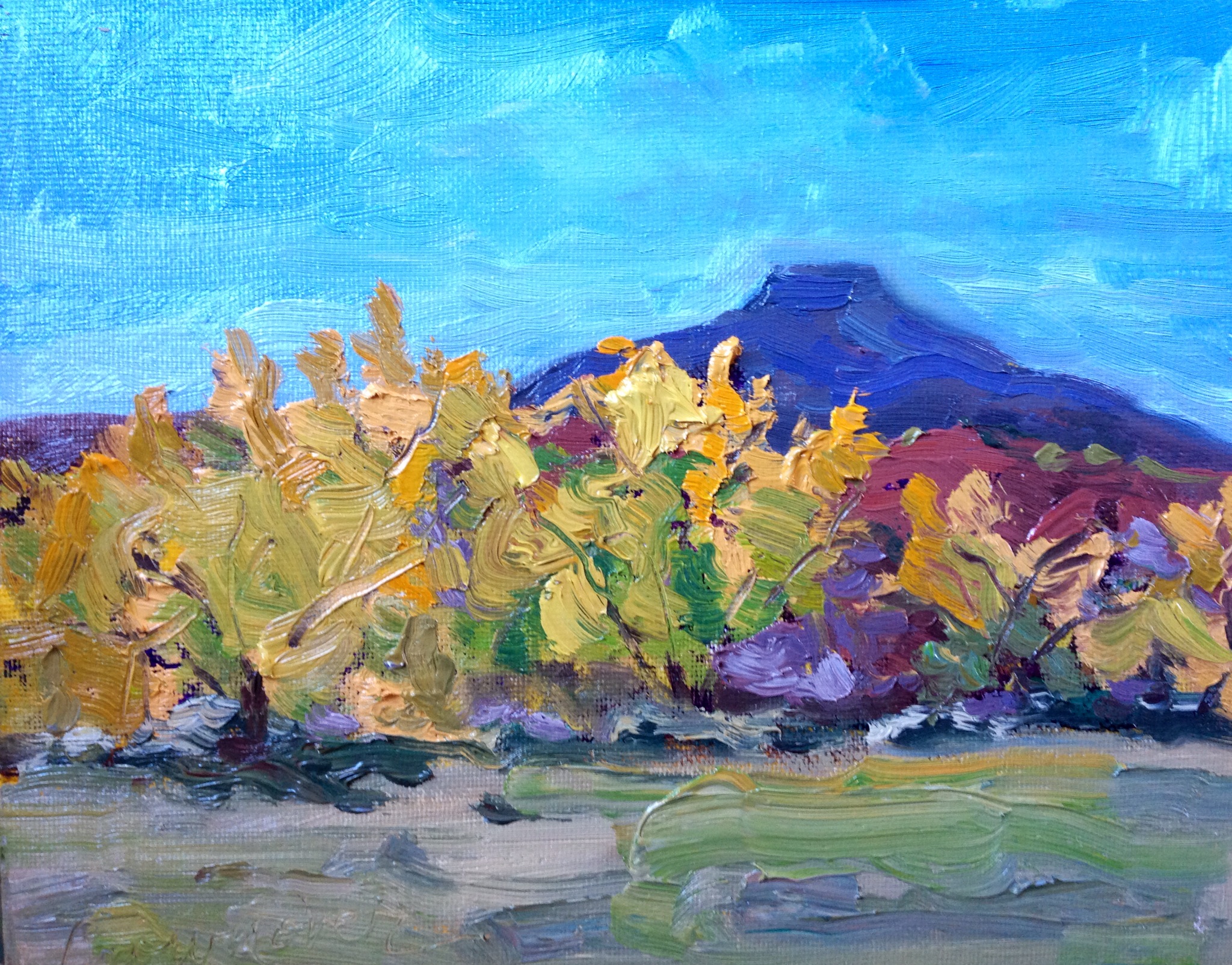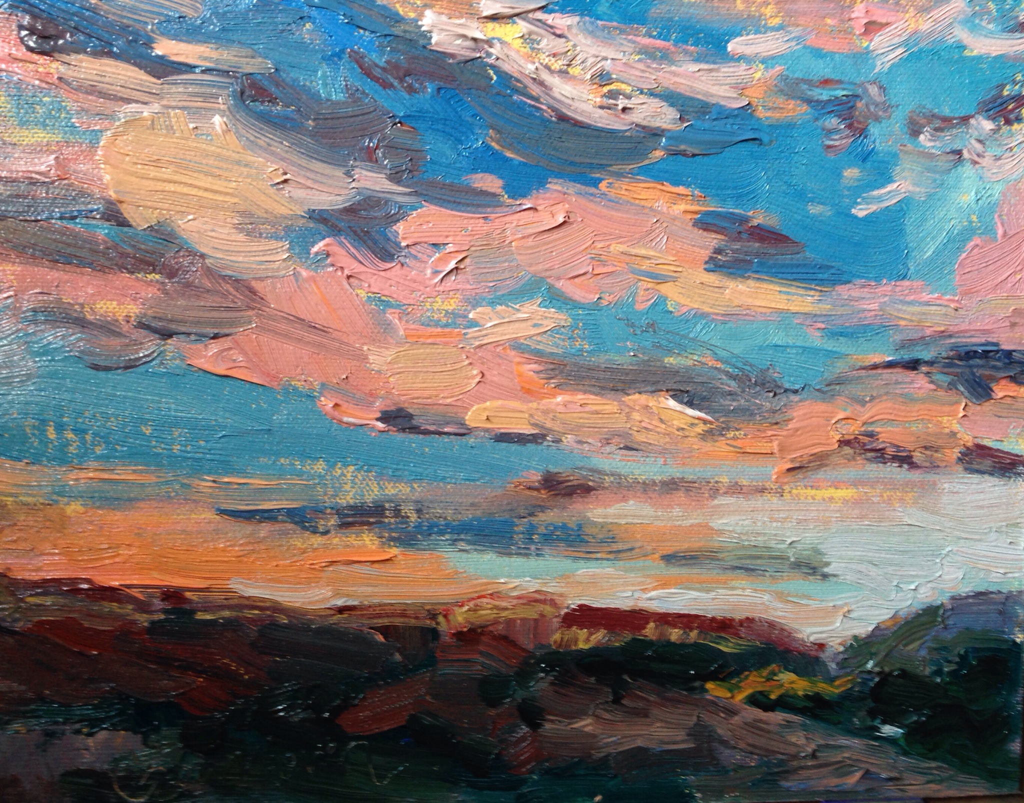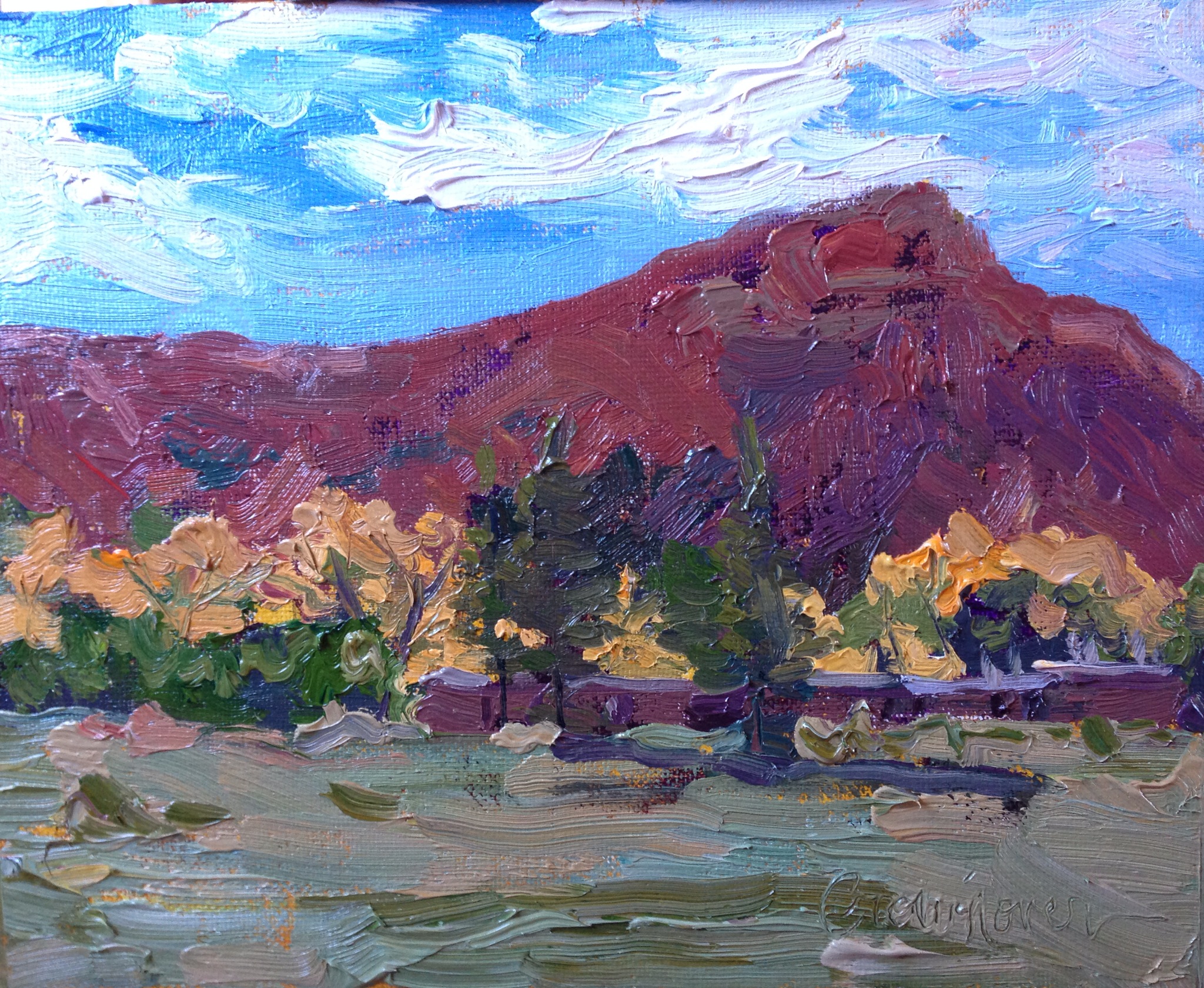 I had ambitious plans to bring home a dozen paintings from this trip. I had slots for 12 wet paintings, and by George I intended to fill them! My last morning I rose in the dark to pack (for a few minutes). I had a very wise professor tell me in college “everything takes longer than you think”. As often as I repeat that phrase I often refuse to remember the lesson. I didn’t really have time to paint this, but as mothers with young children often do, I stretched time (and painted fast). It was a fun challenge to be painting number 12, and also use up all the leftover greys I had mixed during my week of painting.