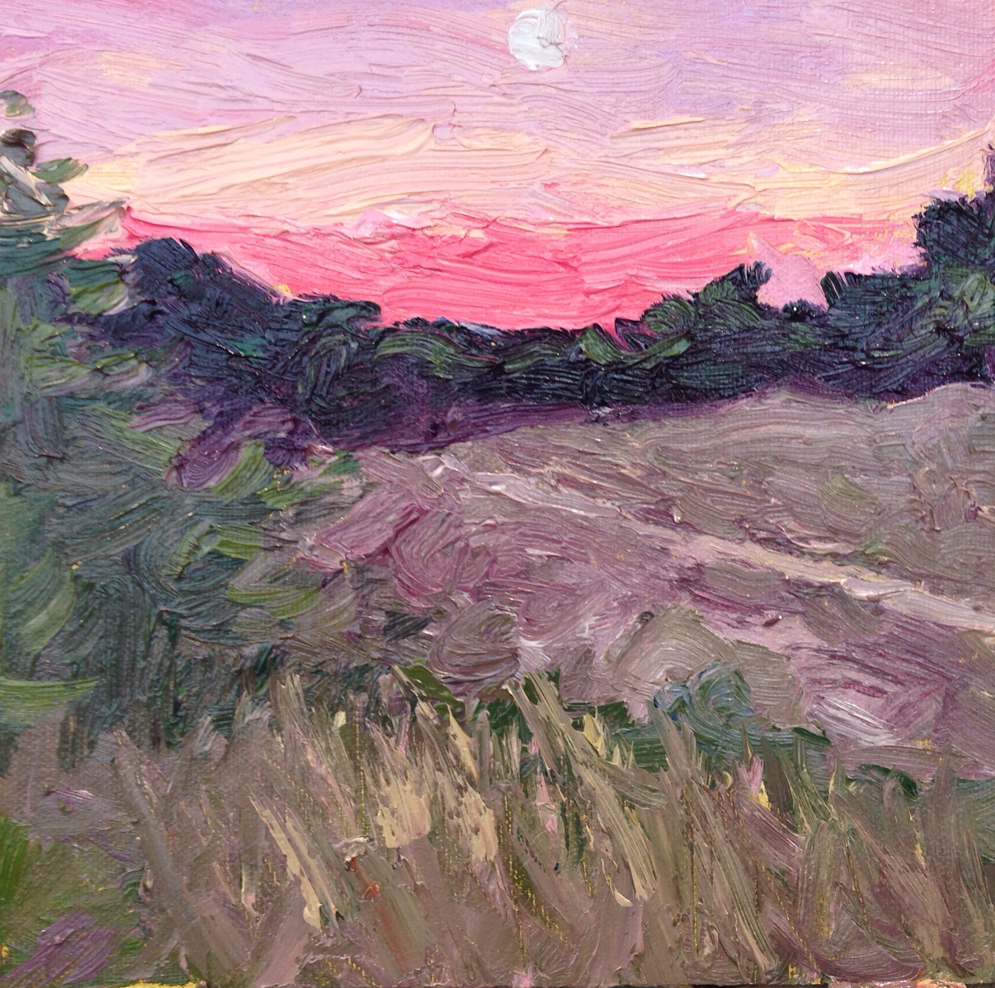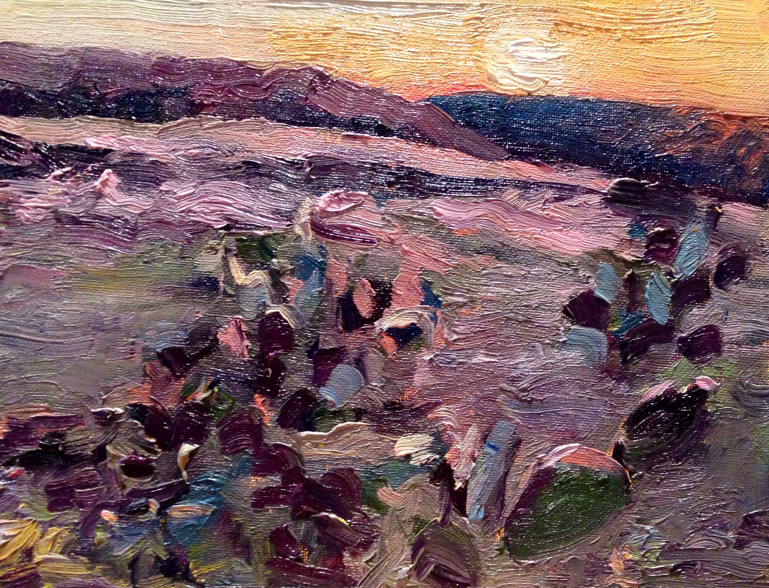 It was fun to use a few brushstrokes of light and dark to hint at the prickly pears that were quickly fading into the hills.
