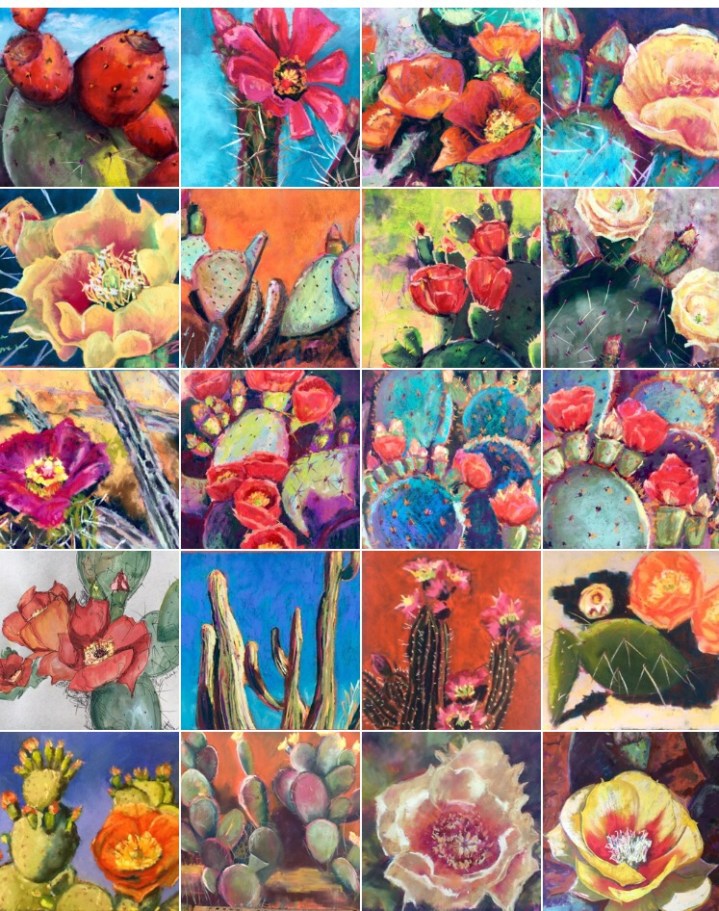 I love to paint roses, and the ones I encounter most grow on cacti. Here is a collection of my recent cactus work: