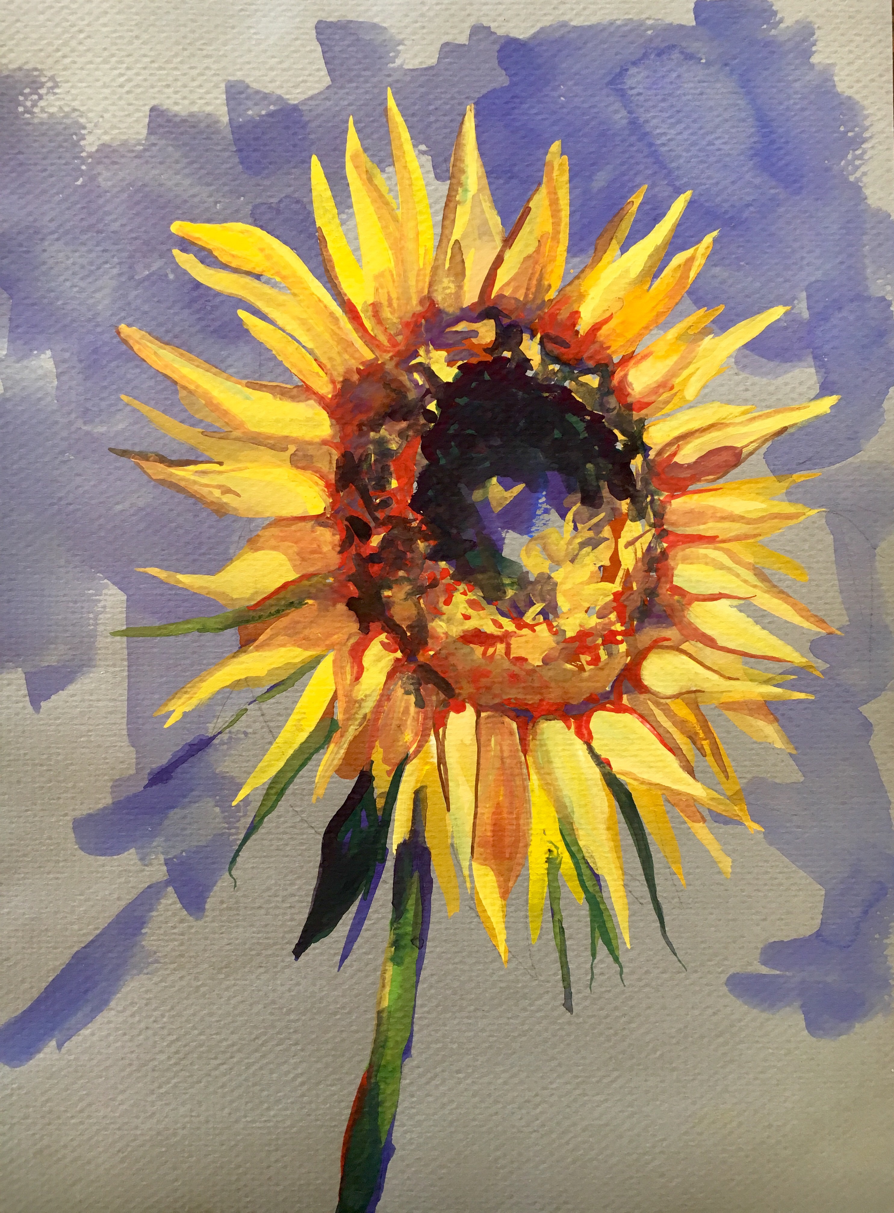 9″x12″ guache on toned paper “Hope is like the sun, which, as we journey toward it, casts the shadow of our burden behind us.” -Samuel Smiles