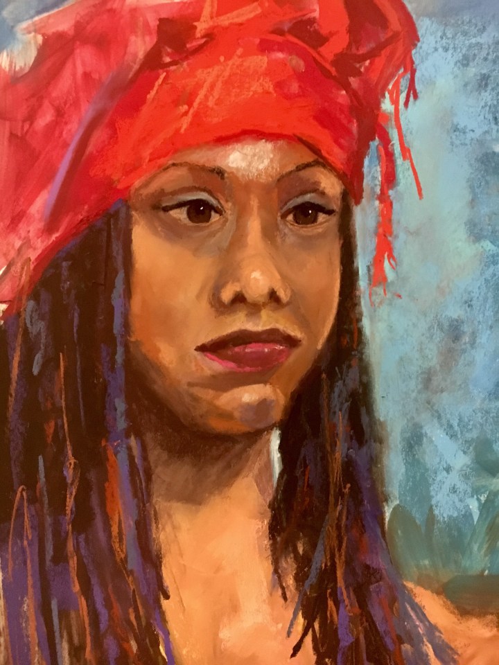 11″x14″ pastel on sanded paper Marquel sings for the Dallas Opera, and today I had the pleasure of painting her from life.