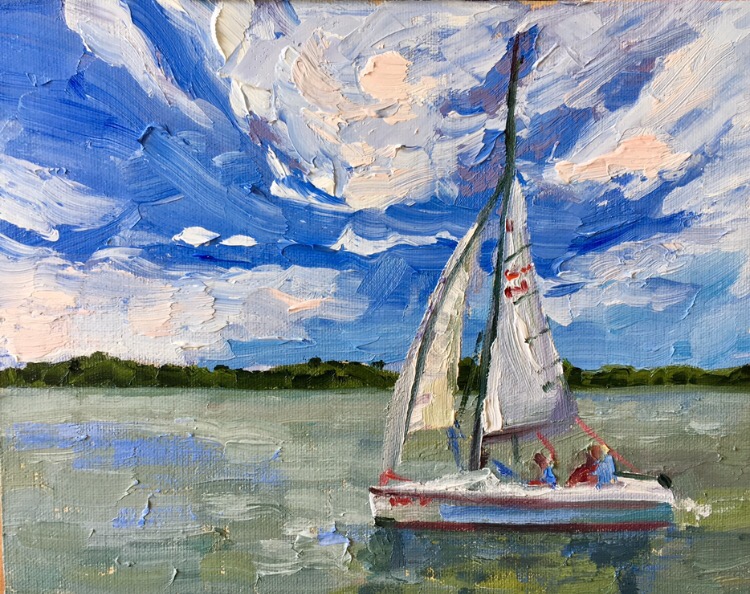 The sailing paintings are so lovely…I like the one from a few days ago that was gray. This makes me want to head to the lake.