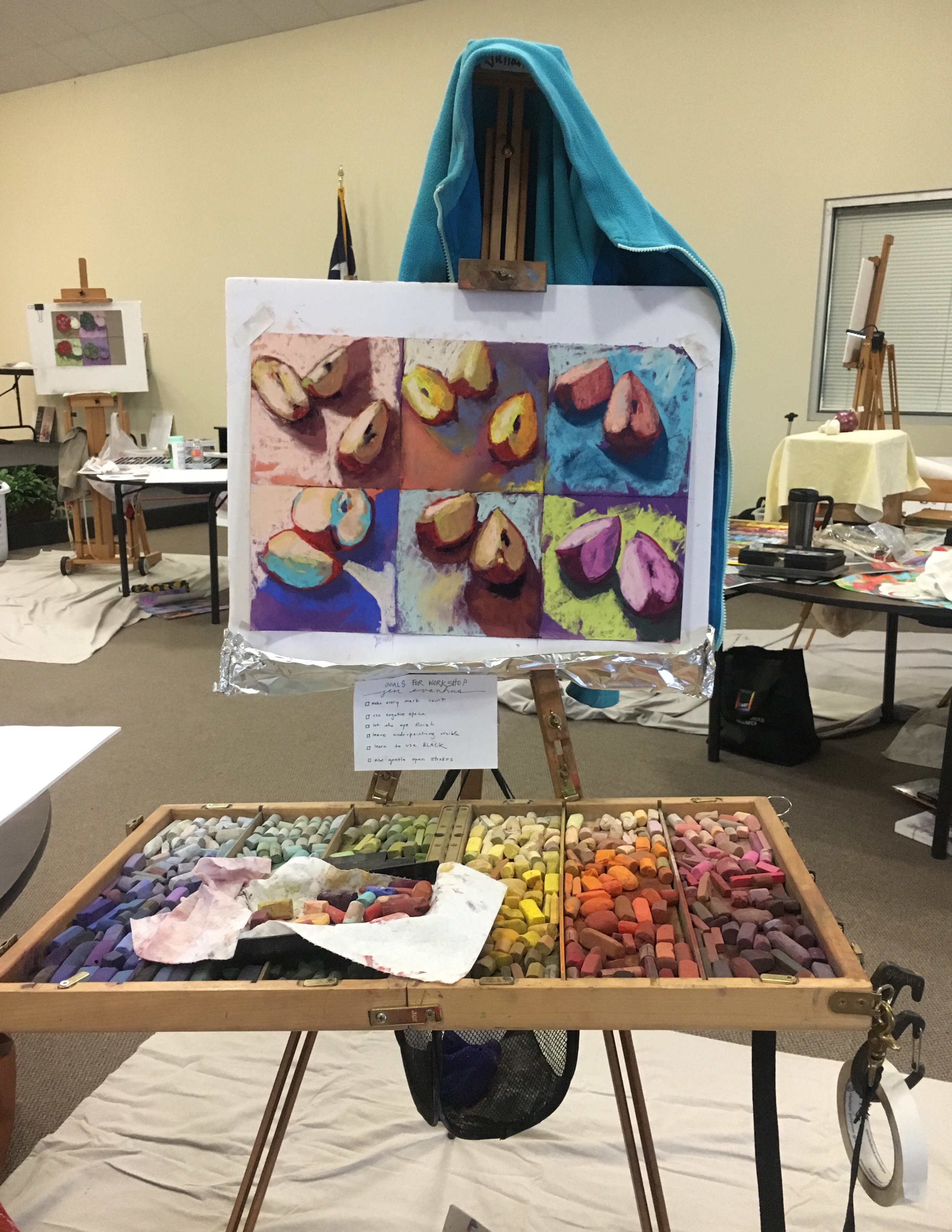 I recently attended a workshop led by Jen Evanhus. It was a great workshop, a nice chance to learn from a talented artist, and a good place to recconect with artist friends.