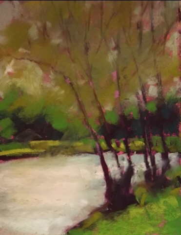 This is the view from my kitchen sink. I know it well; it feels like home: dishes, family, and the familiar are all tied up in those few willowy sycamore trees and that little slice of pond.