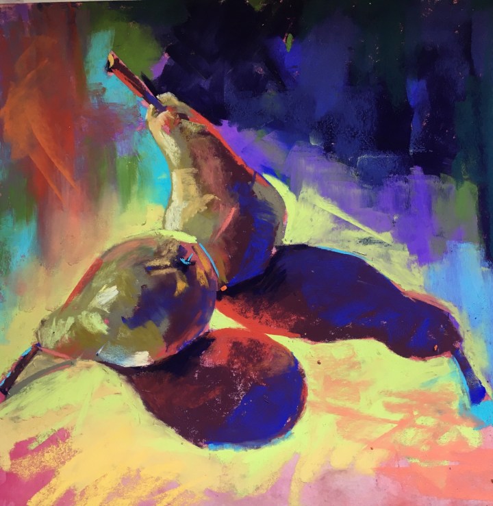 I choose my pears carefully: based on their blush, hip curvature, and stem length and leaning. Even when I don’t paint them, I love to appreciate their beauty, on my counter, until the small window of time when they are perfectly ripe and should be enjoyed: room temperature, eaten with a spoon.