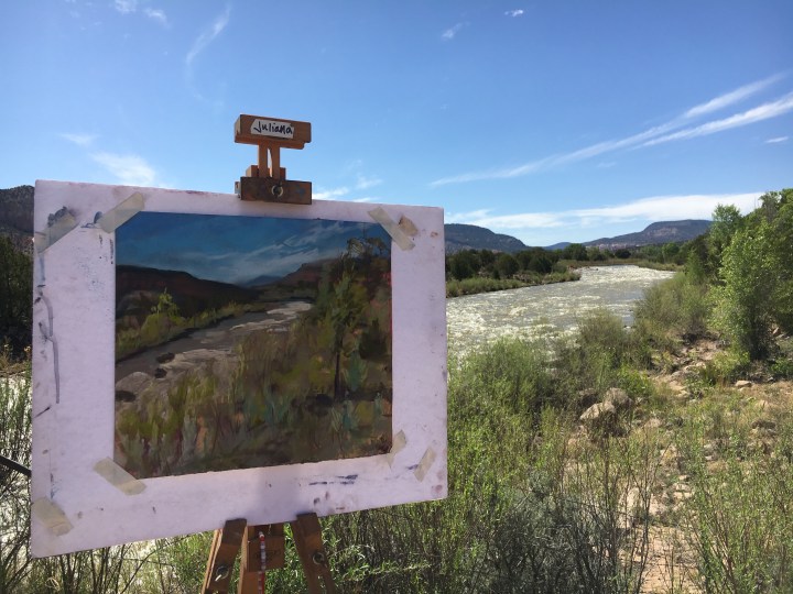 Beautiful day. Beautiful river. I felt a bit like I was riding a bull trying to keep my easel in the ground.