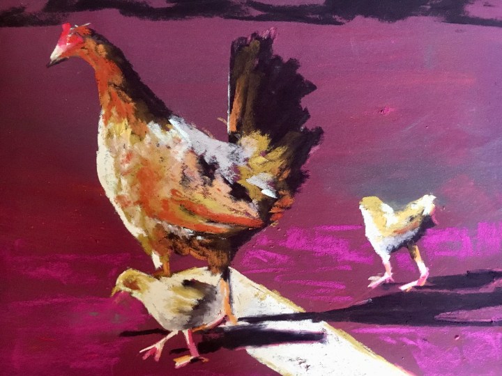 I have been playing with abstraction in my art. I find simplified color and detail to be so beautiful and pleasing to the eye. I love how a few swipes of color can suggest a chick.