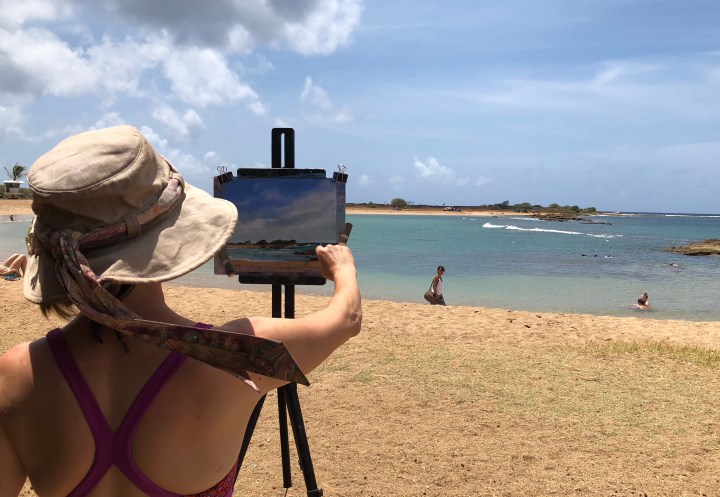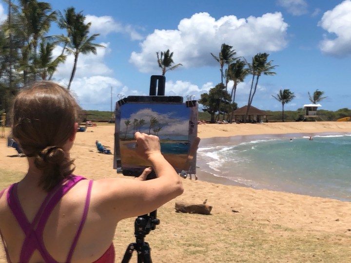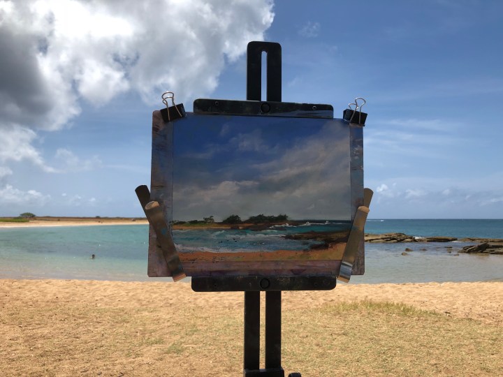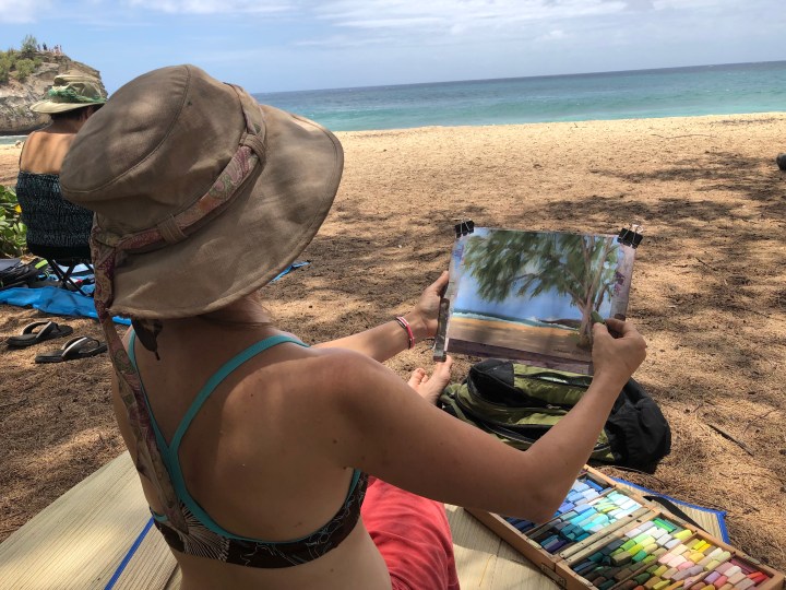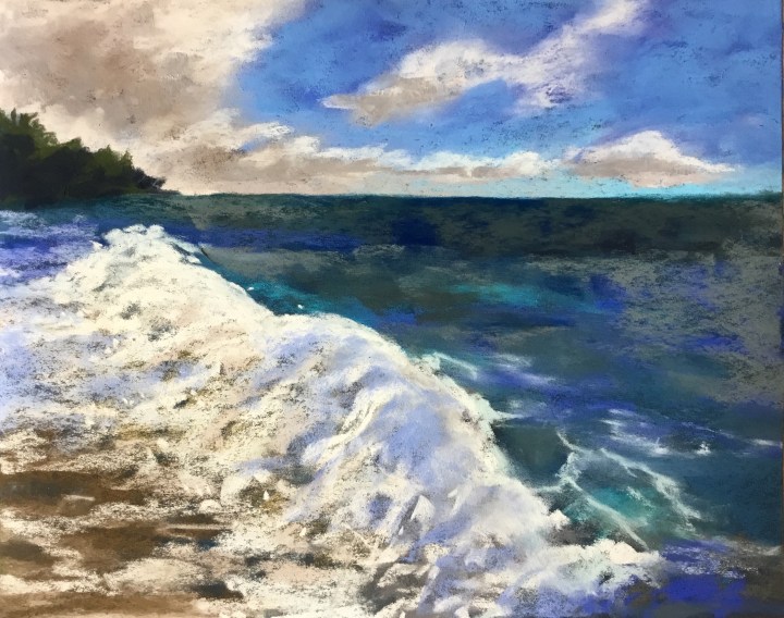 I painted this as an 8″x10″, but I like it better square. Pastel on sanded paper
