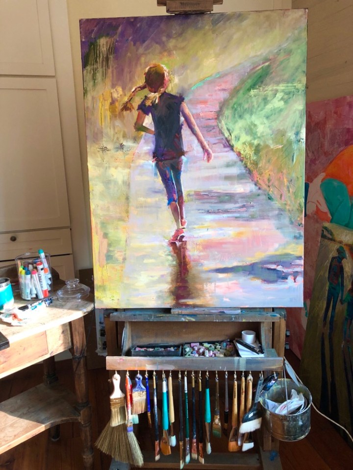 I have pasted in below my painting titled “Let the Day Begin”.  It’s a little more fantasy oriented, but I’m sure I was having some similar feelings to those you were probably experiencing during the excellent “children walking” pieces you have created.