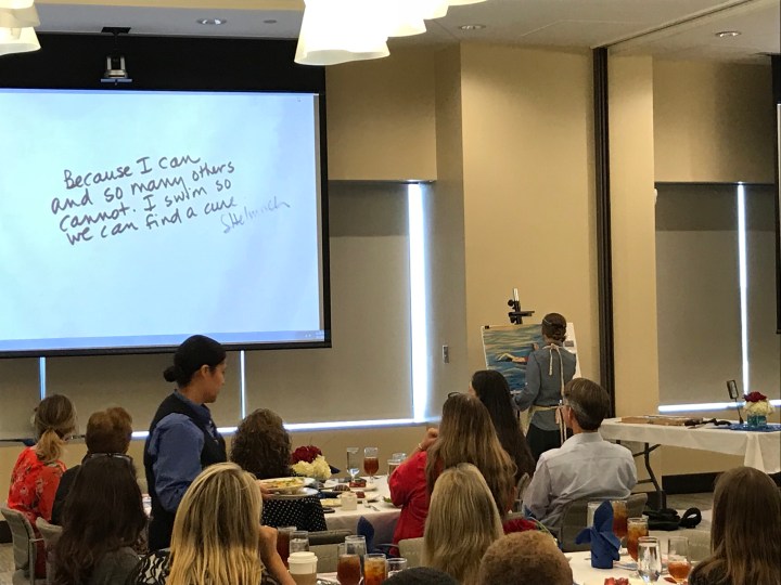 That’s me painting during a fancy lunch with amazing speakers including leaders in cancer research, cancer survivors, and Olympic gold medalist swimmers!