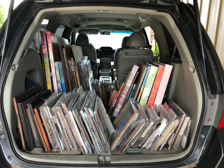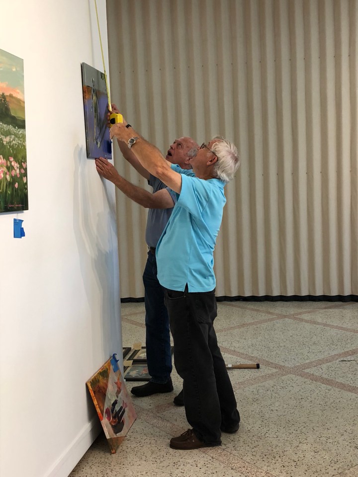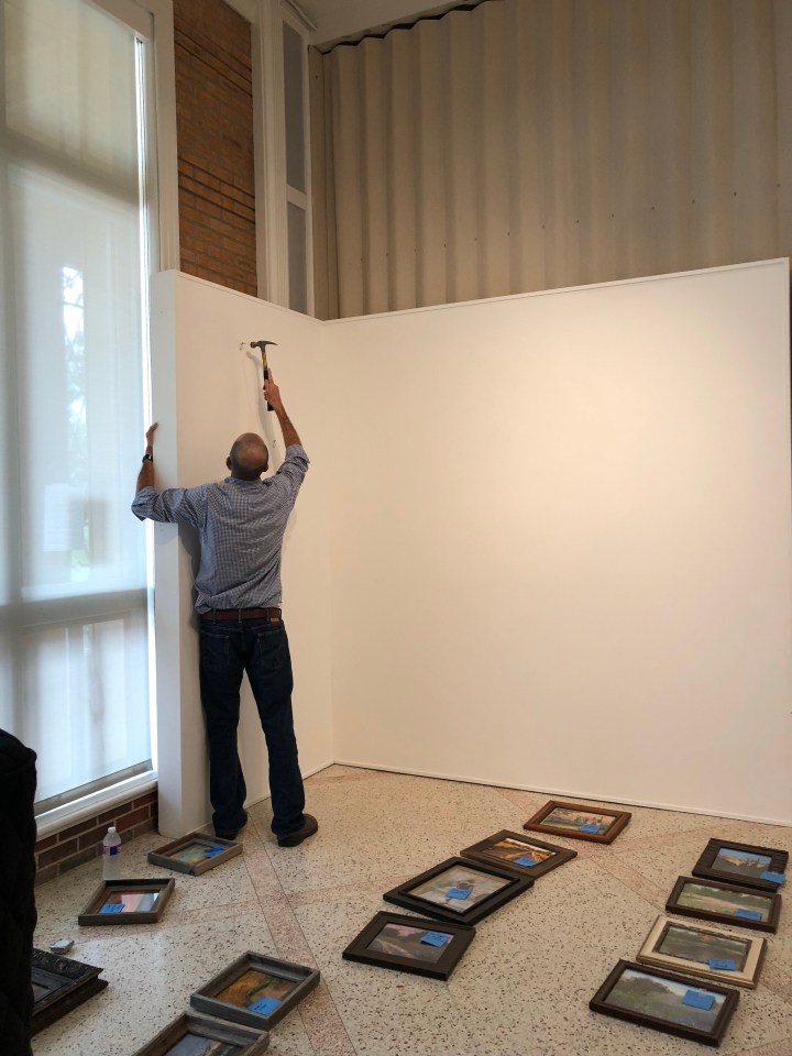 I starting installing my “walking to school” show yesterday! Like seeing your own children dressed for prom, I was delighted and overwhelmed to see 65 pieces of my art framed, away from my studio clutter, and properly lit. My village came to help me hang the show, and I am so grateful.