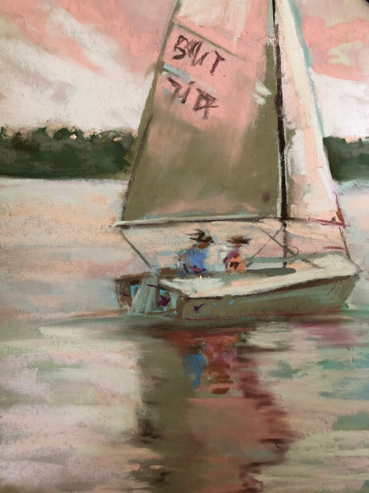 The State Fair Regatta happened this weekend at White Rock Lake. The boats were so beautiful scattered on the lake. No wind may be a sailor’s nightmare, but it makes an artist’s job easier.