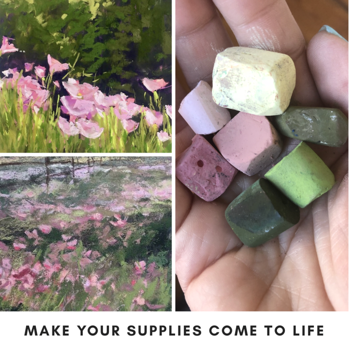 These pastels might feel sad as they lay in a box as bits of chalk, however, they become joyful and proud as they become a meadow, a flower, and a sunrise.