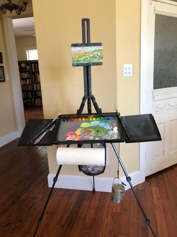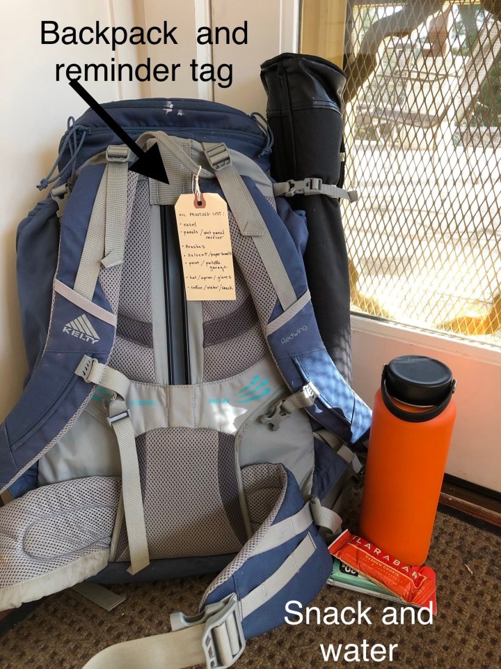 Plein air painting might not be your thing, but the advice holds in other situations. I pack and then set up outside my studio before doing a demo. Do I have everything I need? Have I thought this through?