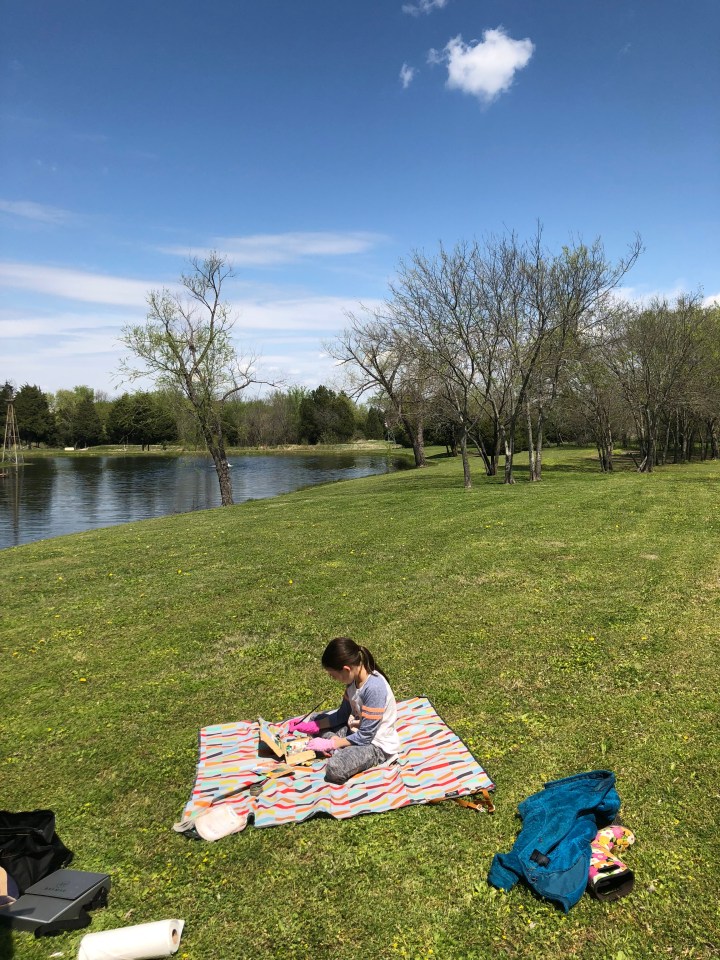 The middle school flooded and was temporarily closed, and I got to enjoy an unexpected spring day with 2 of my kids. If you look carefully I captured my son and his fishing buddy on the far shore of the pond. I felt old fashioned saying “do whatever you want, as long as you are outside.” It was a gift, and I am grateful to have received it.