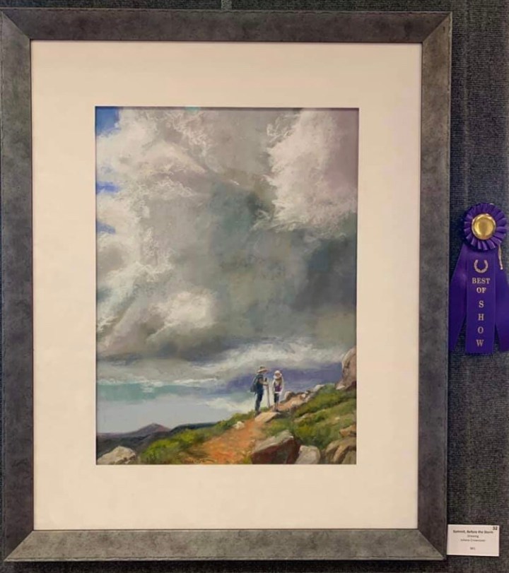I am honored to receive best in show from the Rockwall Art League. For my painting “Summit, Before the Storm”.