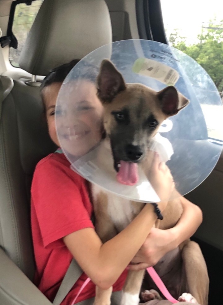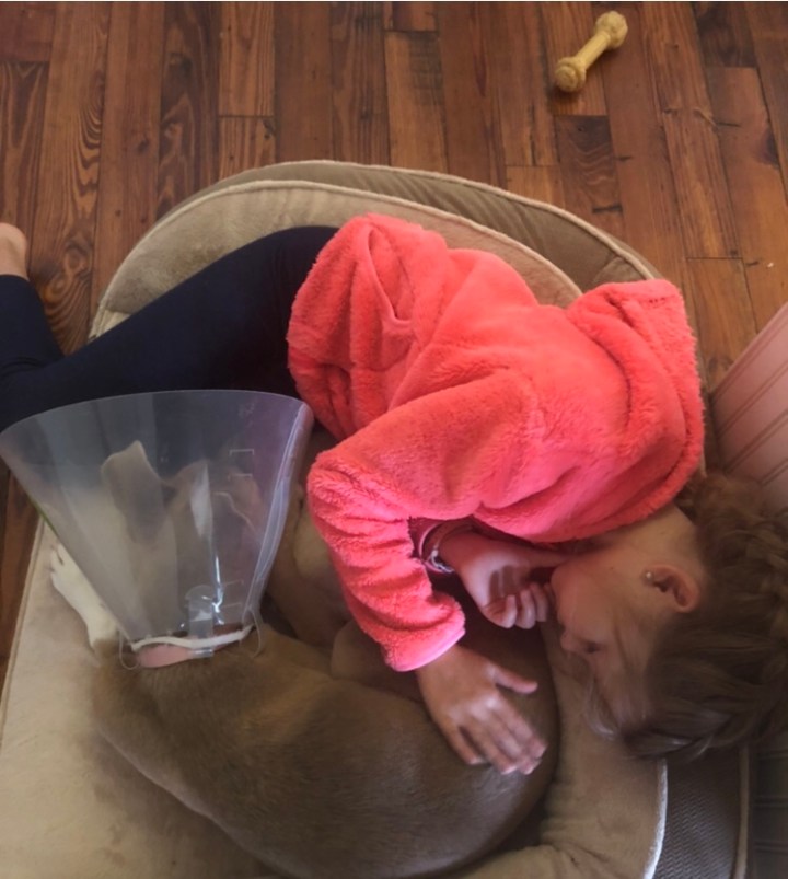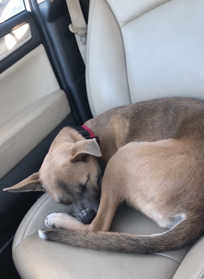 Daisy is my first dog – ever. My daughter begged for one for a couple years. I assumed I would be doing the lion’s share of the work, like I did with her brother’s Ball Python a few years back. I am happy to report I am not. The kids have been amazing, and since they go to school. Daisy and I still have a special connection I am delighted with. She lays at my feet while I paint, keeps the kitchen floor clean while I cook, rides shot gun for short errands, and helps me walk the girls to school, and reminds me to take breaks and play during the day. The sunrise is a pretty good reward for an early morning potty break.