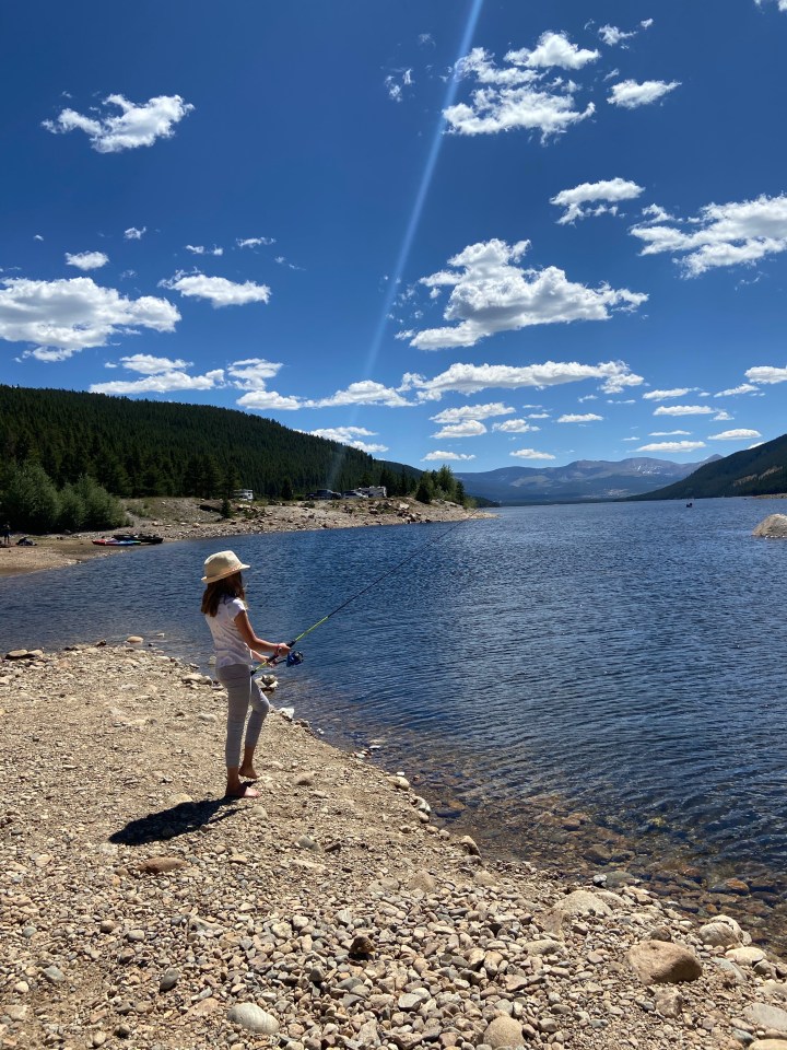 We arrived at Turquoise Lake, one of my favorite places. I set up to paint, and my other son found his fishing spot. “Mom, do you want to try trout fishing?” Of course, I replied “sure”