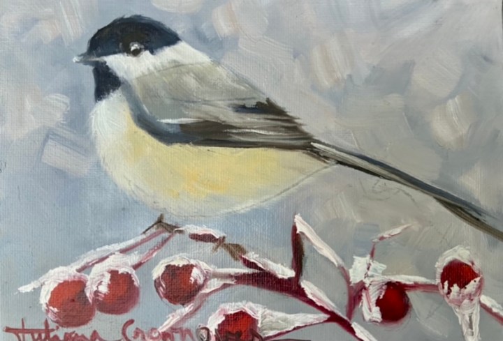 5″x7″ original oil on panel For sale. Click to buy $75 It is a cold grey day, AND there is still beauty to be found.