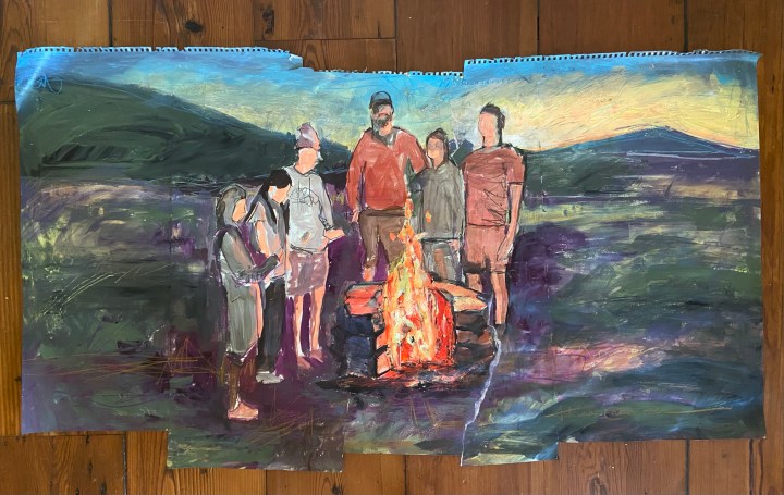 When my you youngest child got home today, she applauded my efforts. Then she asked why Noah, my oldest, looked like a robot. “Well, I was looking at a photo, and that is how he was standing?” Was my reply. Feeling free, I ripped his part of the painting off and reattached it. I can’t tell you how satisfying it is to work like this!!!!