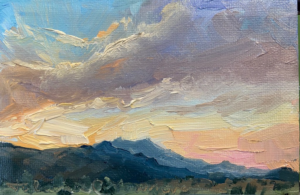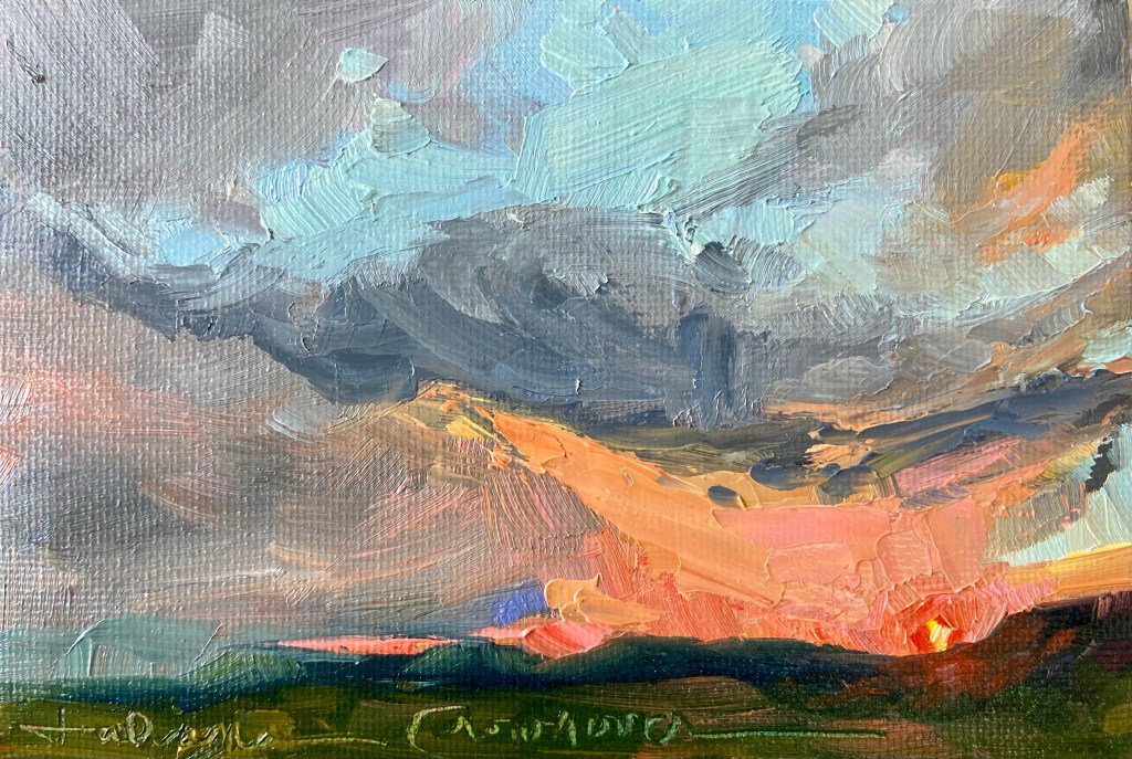 I LOVE to start my day with the sunrise, it is the best reminder that I have another day, and to make it count. Today is the longest day of the year, measured by hours of daylight. Days can feel long for different reasons. I painted today’s sunrise thinking about a friend who is saying goodbye to her mom. No question, our world is a better place because she made her days count and her blessings poured out because of her efforts.