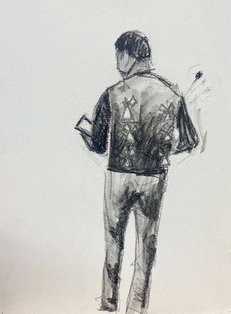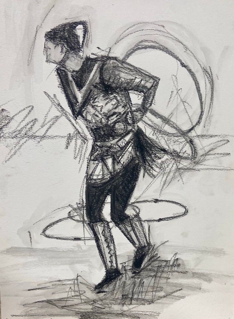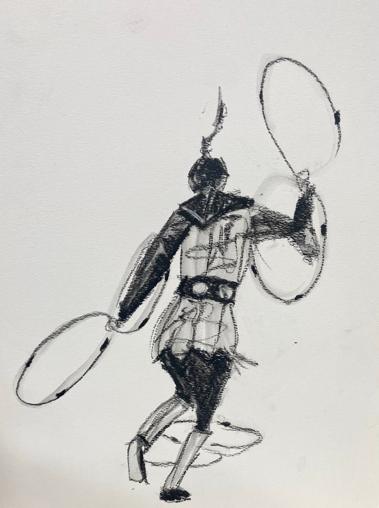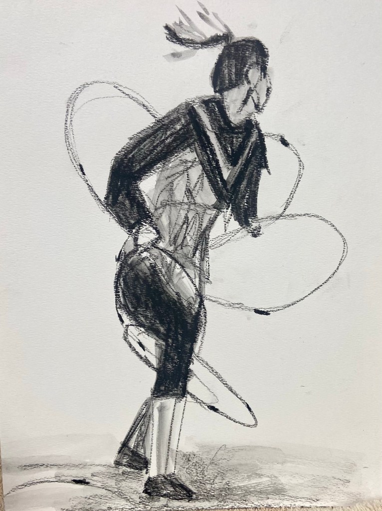 Watching hoop dancing has been at the top of my list of an amazing summer. Hoop dancing is: amazing, athletic, mesmerizing, graceful, creative, beautiful, spellbinding…. and you can watch this beautiful dancer on GOOD MORNING AMERICA Friday, July 30th. My friend, and fellow instructor at Ghost Ranch, Steve Lorance will be in the Santa Fe Plaza with Lightning Boy Foundation with many hoop dancers for Good Morning America – filming in New Mexico. Below are a couple of quick sketches of Steve’s beautiful daughter dancing. And one of Steve chanting and drumming.