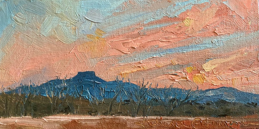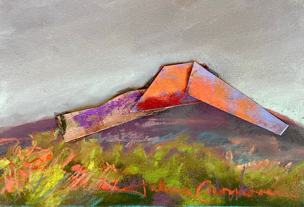 I taught 4 week long workshops this summer at Ghost Ranch. The pastel class had a name that surprised me… “Pastel Groove”. It wasn’t my title, but I decided to do my best to live up to it. We abstracted landscapes, used pan pastels, stencils, and collage! I have always loved to tear up watermedia paintings and collage them into new paintings. This summer was my first time to try it with pastel. It is harder to stick down through the powdery pastel, but I love the effect!