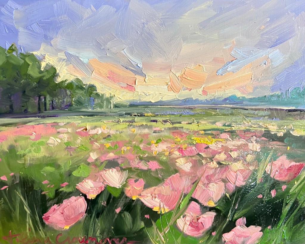 This is a study for a commission, for a dining room. A dining room of someone who loves to cook. A place where magic, and love, and effort will be presented to bring people together to nourish bodies and souls. I painted the most magical place the world for me. I worked on it at Baylor hospital, and remarkably, people were transported:).