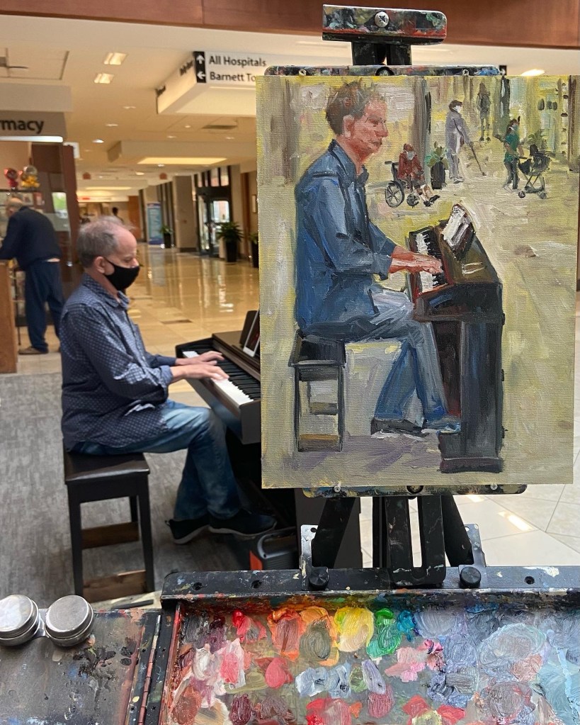 I painted Mark at Baylor hospital in Dallas. He played the Viola while I painted, it was delightful!