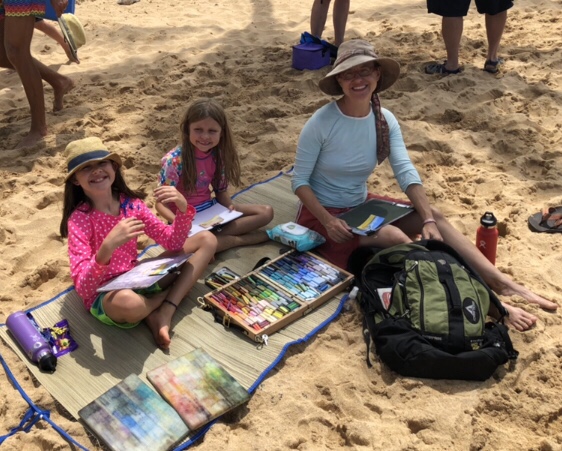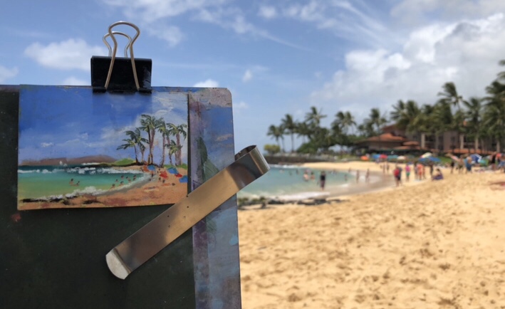 My sweet husband is a runner, and he spends his runs scouting out fantastic painting spots for me. Today he made coffee in the dark, brought me to a spectacular beach, and even set up my easel.