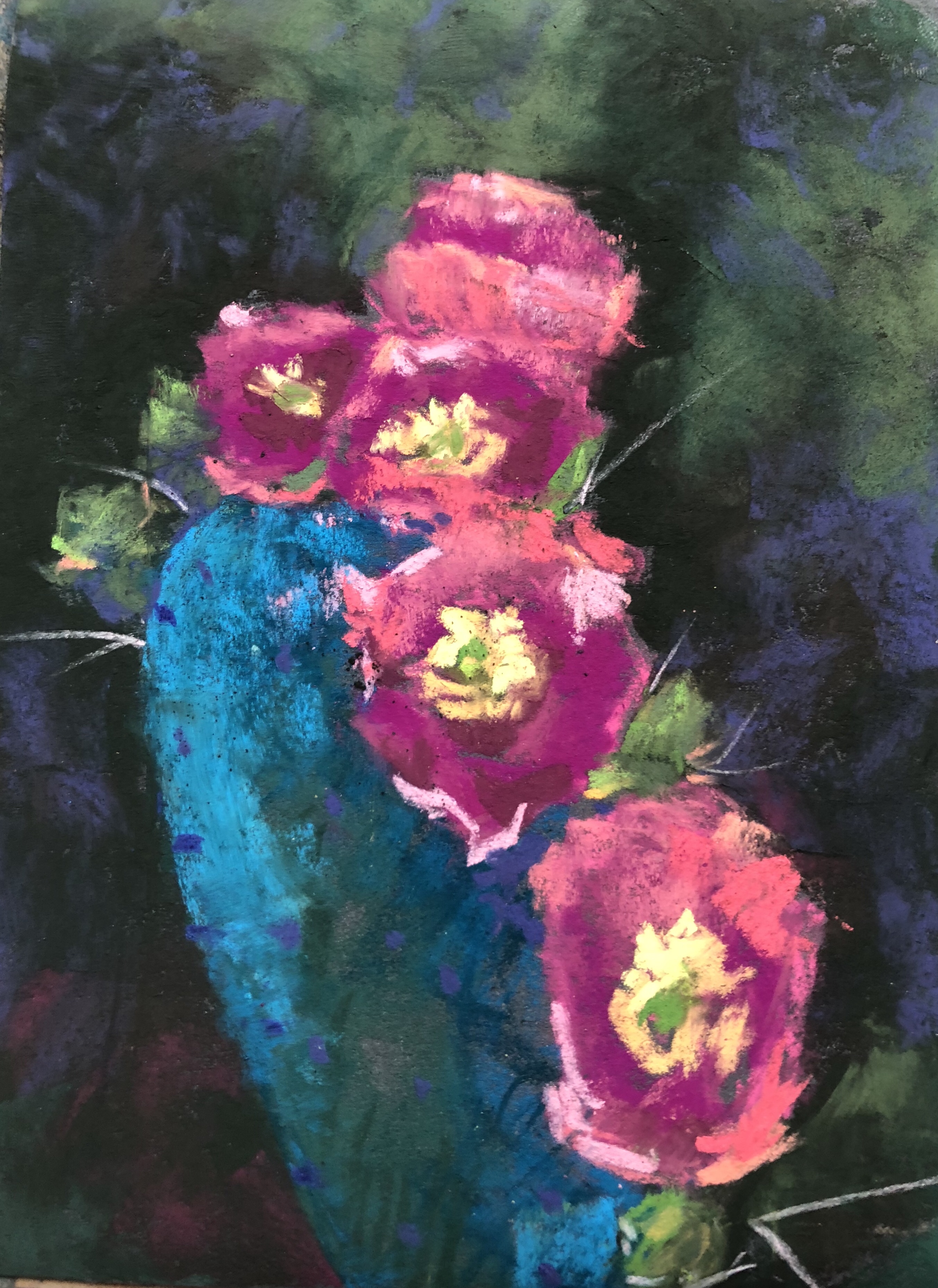 I decided to spend a few more minutes on this study. Spines are my favorite part of a cactus, so I wanted to add them. This photo was taken in lousy light, the light value of the background is a beautiful blush. It photographed almost white today.