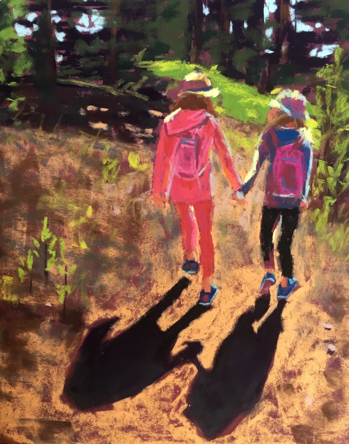 8″x10″These girls are so strong, and so sweet. I loved that they were hiking holding hands on the amount Massive Trail. However, if I were to be completely honest, I painted this because their shadows look like little yetis, and the shape delighted me.