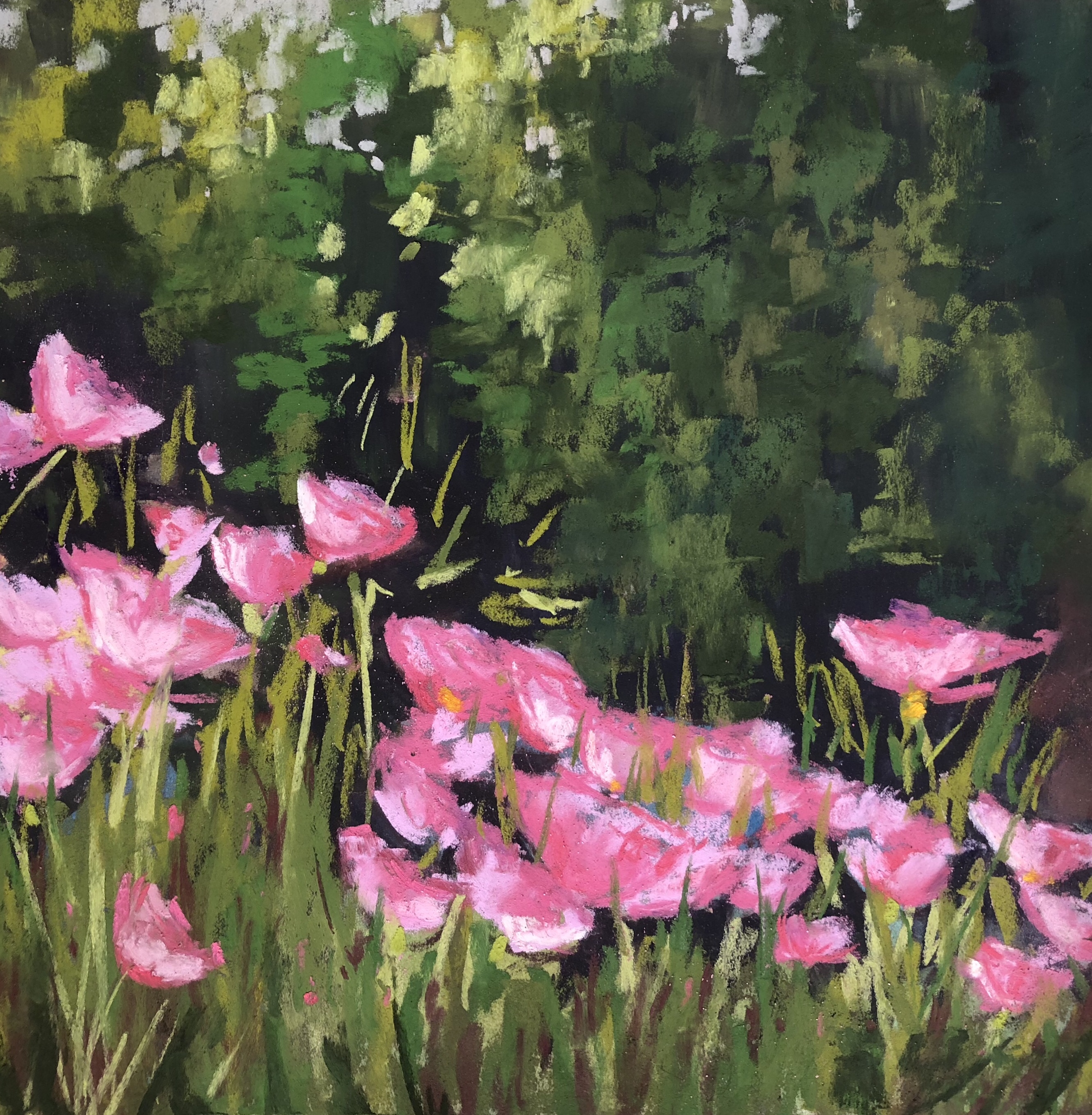 These paintings are about being present: we put away the phone, compose a rhyme or poem, talk about the day, share our hopes and dreams, plan dinner or our next family celebration. We notice what is in bloom, when the leaves change color, or when someone repainted their front door. We have noted that all those carpoolers don’t have a chance to: meet a new neighbor, pet a kitten, do a cartwheel, twirl a tutu, pick a flower or sneak a fresh fig hanging over the fence.
