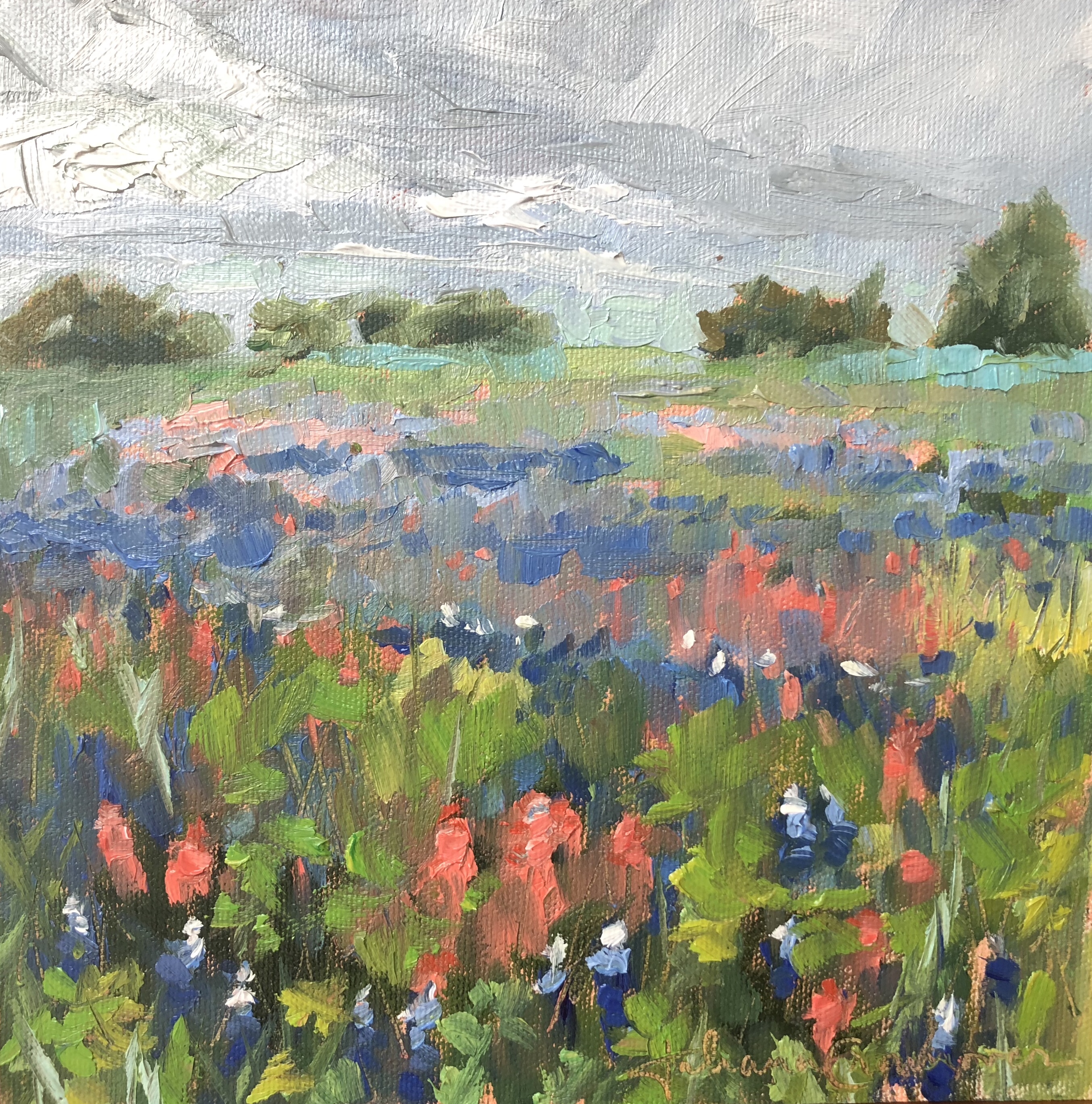 As I painted this I thought “Oh Texas, You should always dress in wildflowers. They are so becoming on you!”