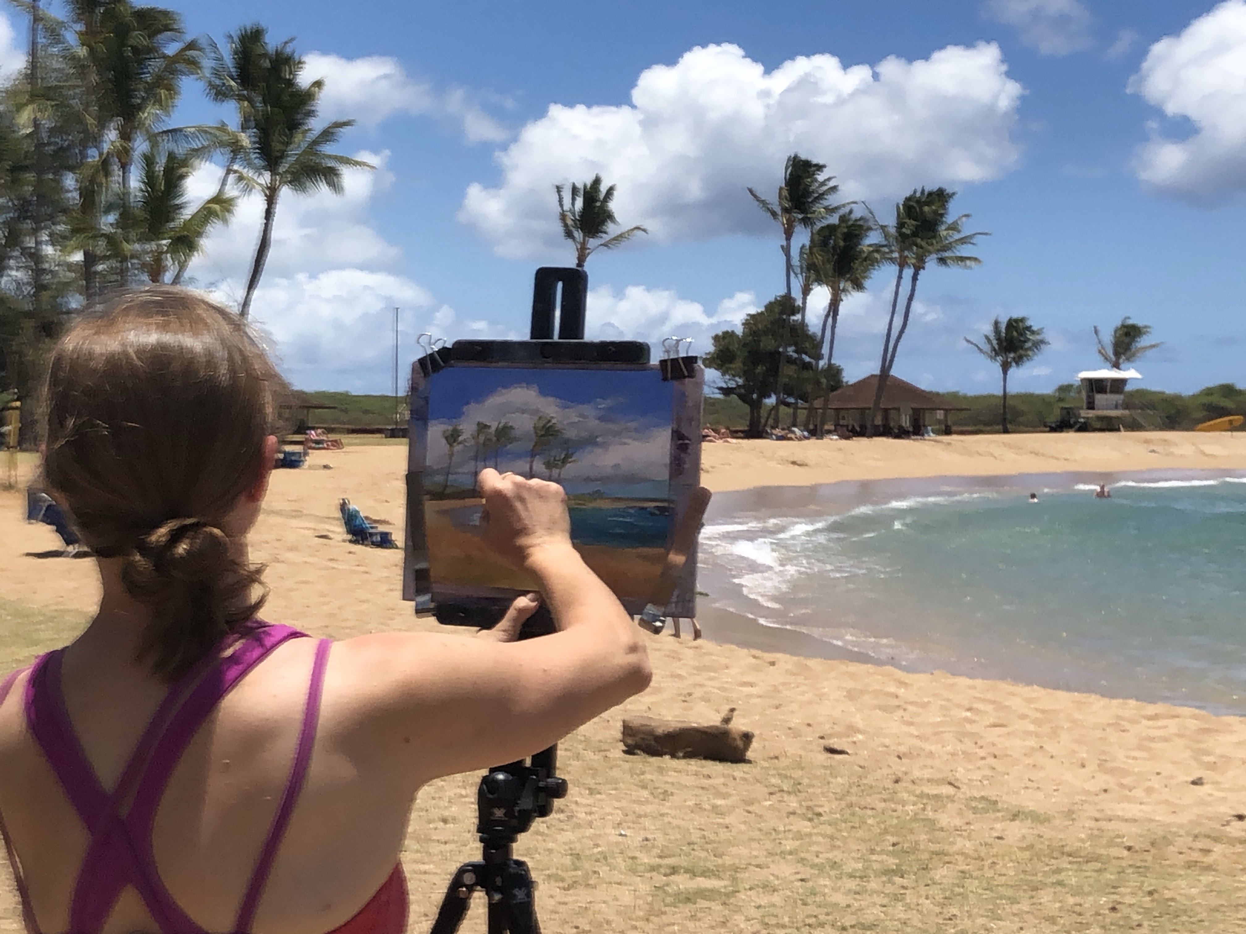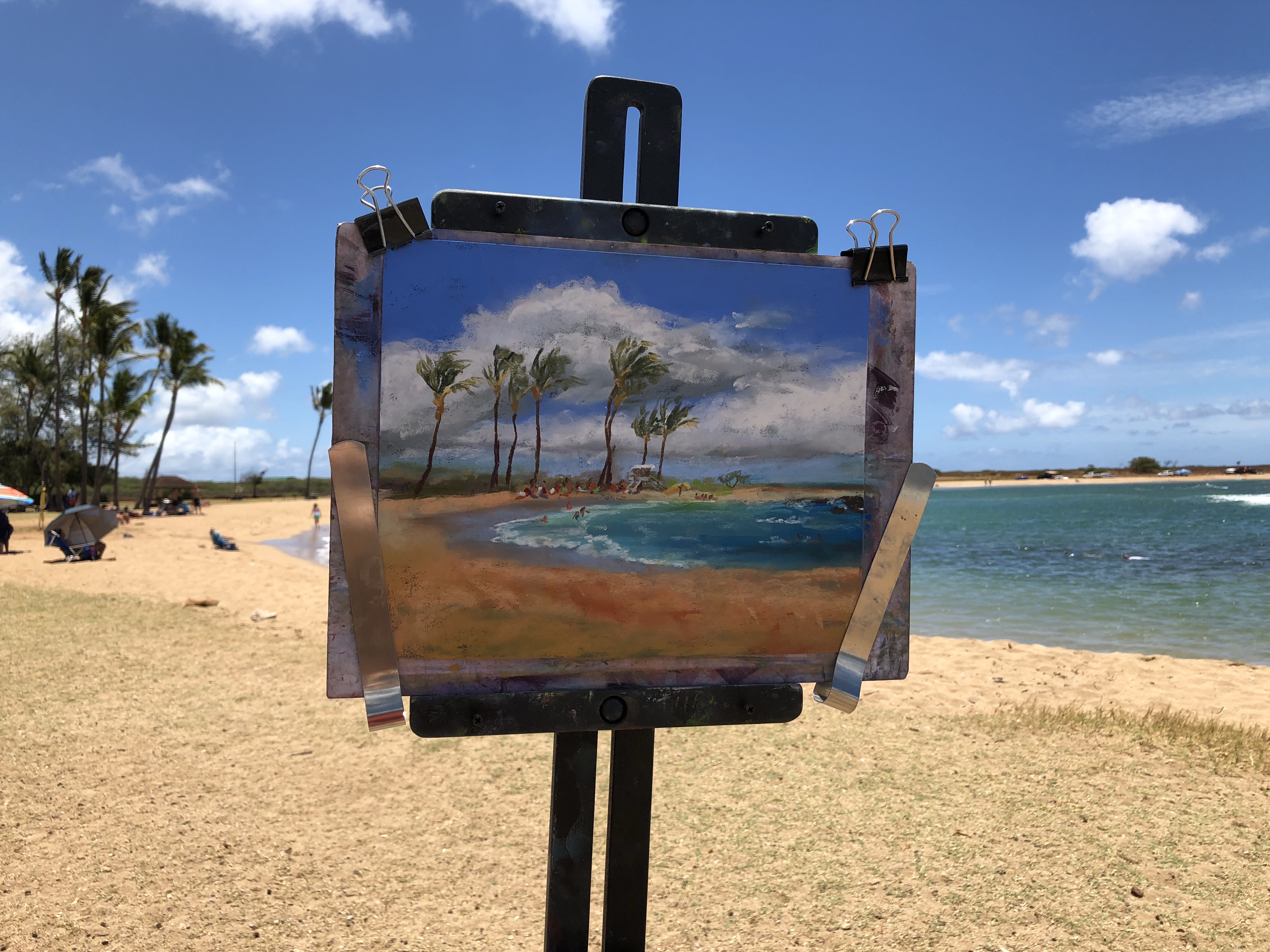 My sweet husband is a runner, and he spends his runs scouting out fantastic painting spots for me. Today he made coffee in the dark, brought me to a spectacular beach, and even set up my easel.