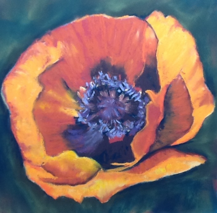 Today and yesterday’s flowers look really good together, I like the way they are facing each other. Perhaps they are engaged in a serious conversation, or just some chatty flower small talk. Here they are on my easel, the photo doesn’t really capture the intensity of the orange.